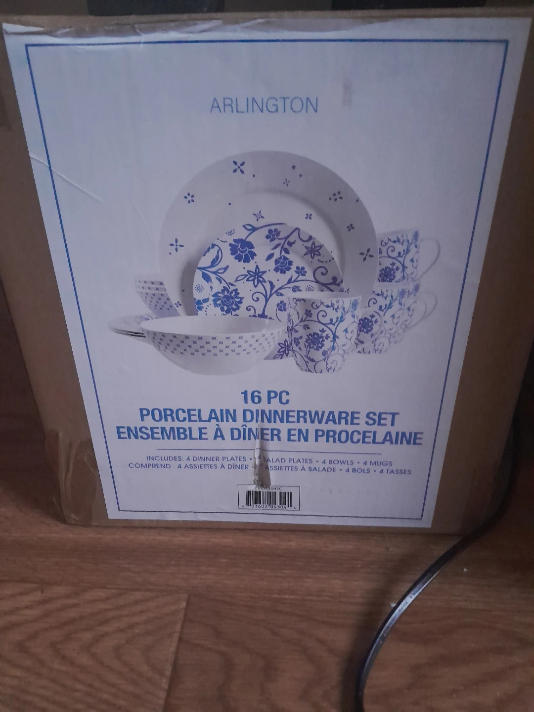 Selling an Arlington 16-piece porcelain dinnerware set! The set includes 4 dinner plates, 4 salad plates, 4 bowls, and 4 mugs. Perfect for a new home or to upgrade your current set!