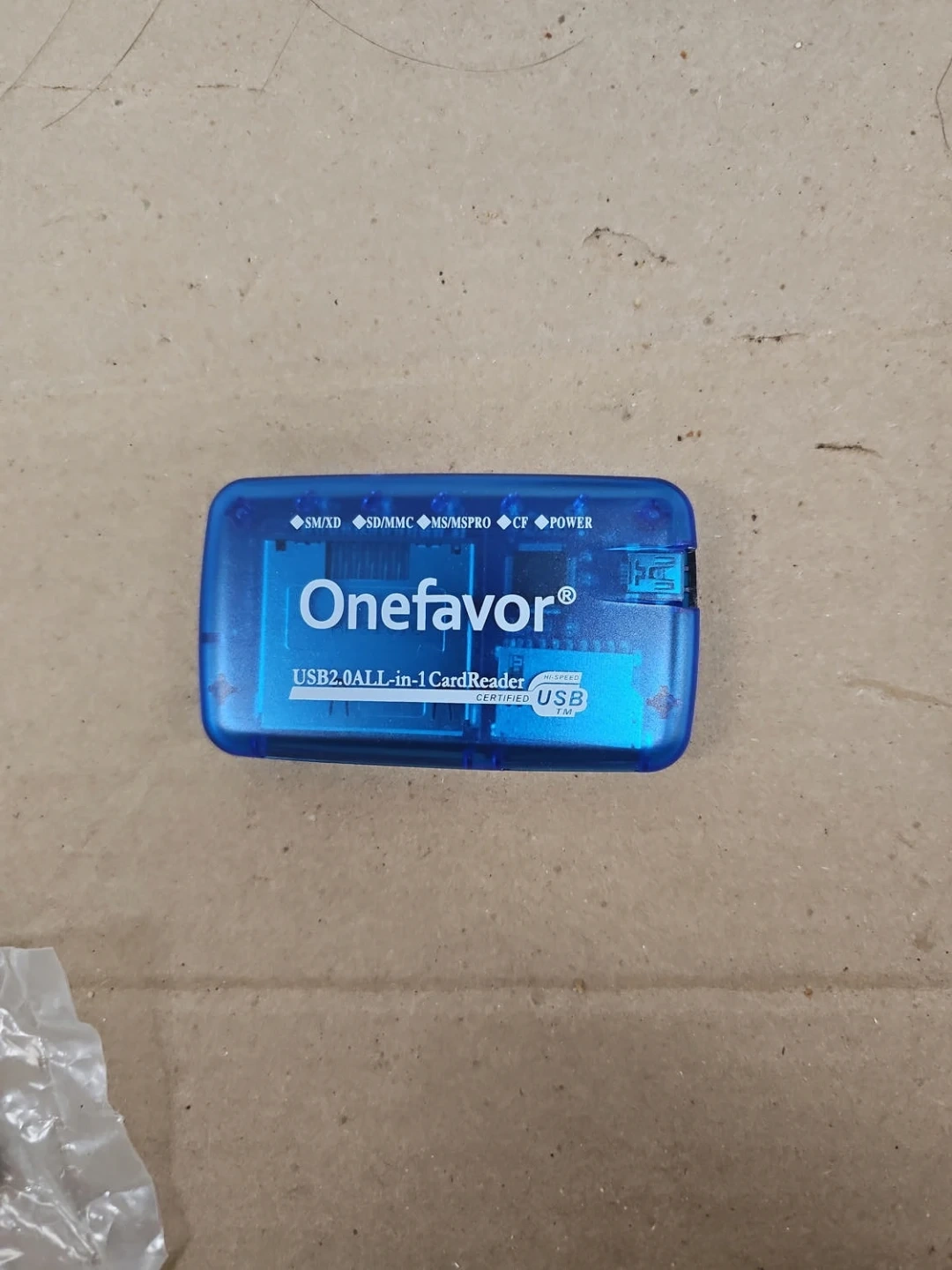 Selling a Onefavor USB 2.0 All-in-1 Card Reader. It supports various card types including SM/XD, SD/MMC, MS/MSPRO, and CF. It's a handy little gadget for transferring files!