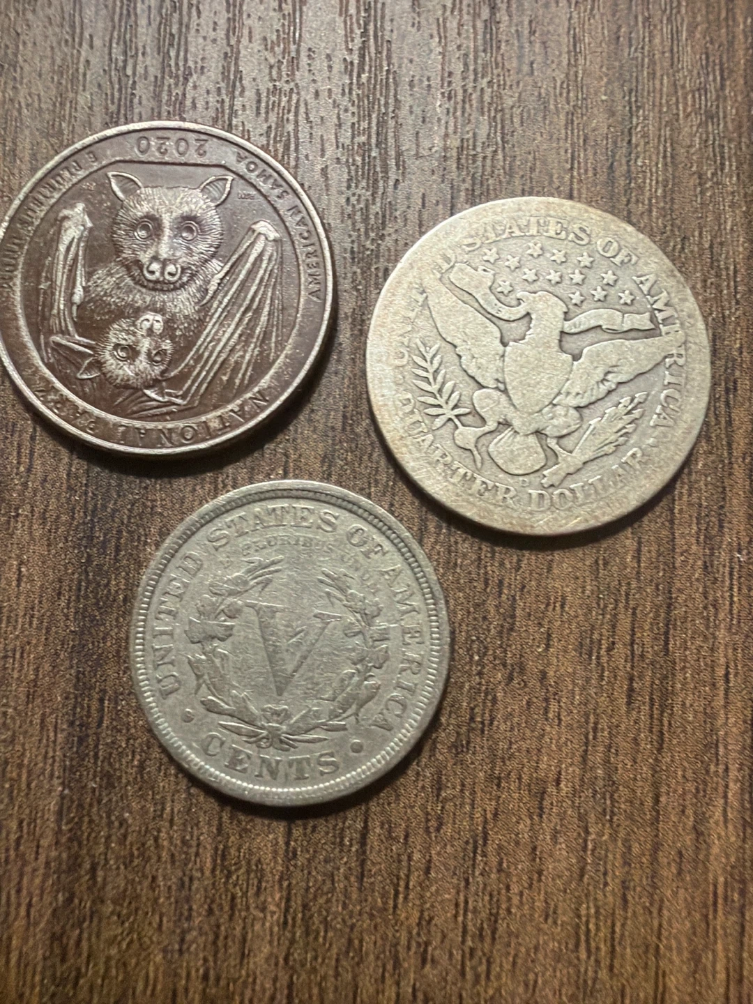 Collection of 3 US Coins: 2 Quarters and a V Nickel