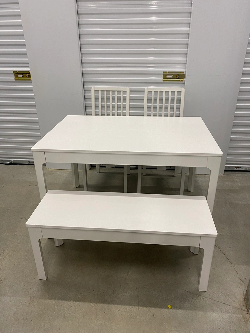 Ikea Ekedalen dining set with an extendable table (4 to 6 people), 2 chairs and a bench—all in good condition.