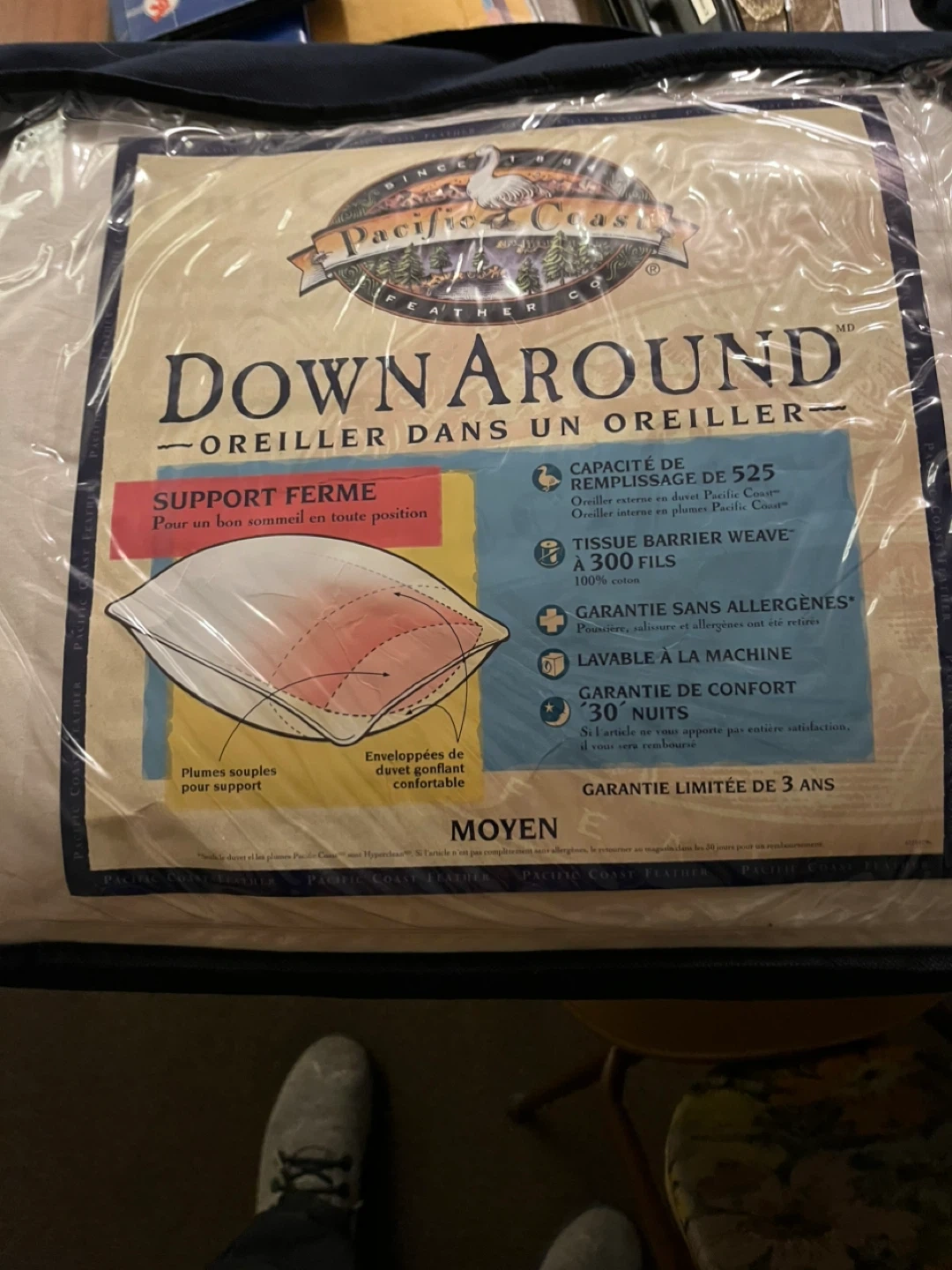 This Pacific Coast Down Around pillow offers firm support for a good sleep in any position. It features a tissue barrier weave with 300 threads and is 100% cotton. It's also machine washable and hypoallergenic, with a 30-night comfort guarantee and a 3-year limited warranty.