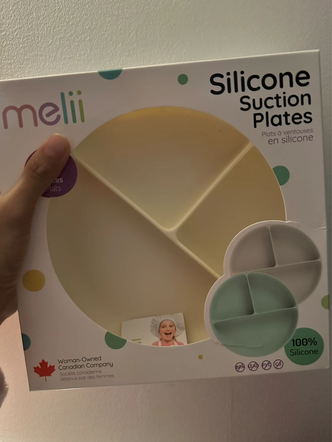 These Melii suction plates are made from 100% silicone. They're designed to stick to surfaces, preventing spills. Great for little ones learning to self-feed!
