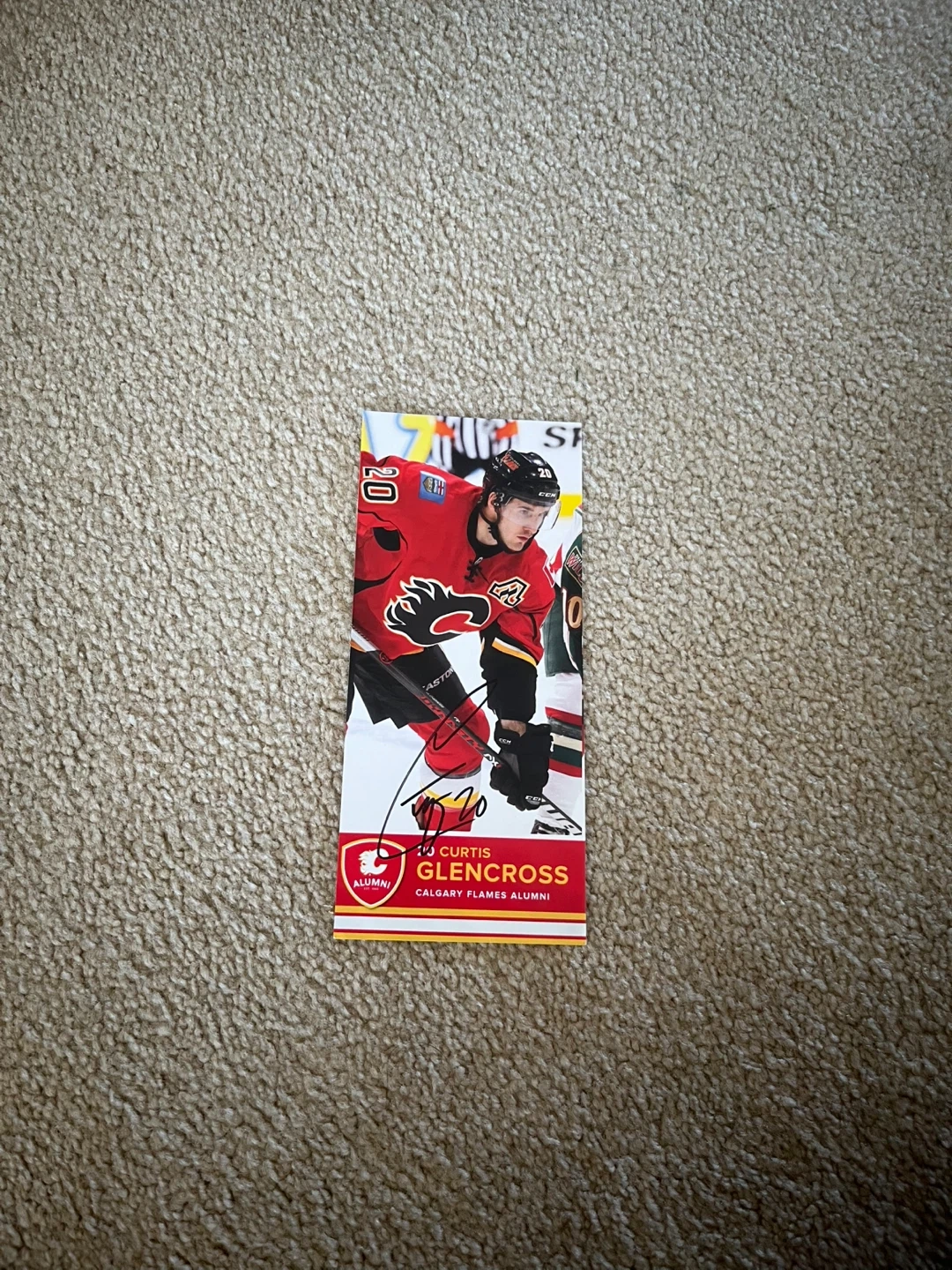 I’ve got an autographed Curtis Glencross Calgary Flames Alumni card. Great for any Flames fan or hockey memorabilia collector!