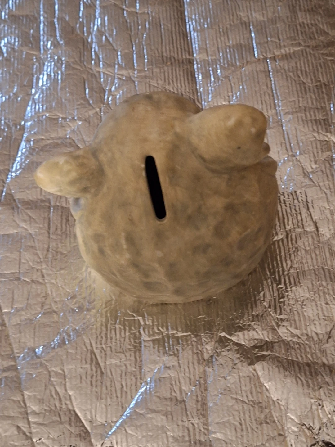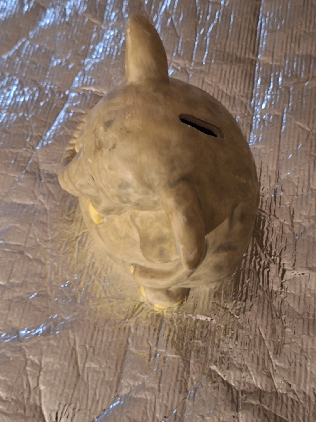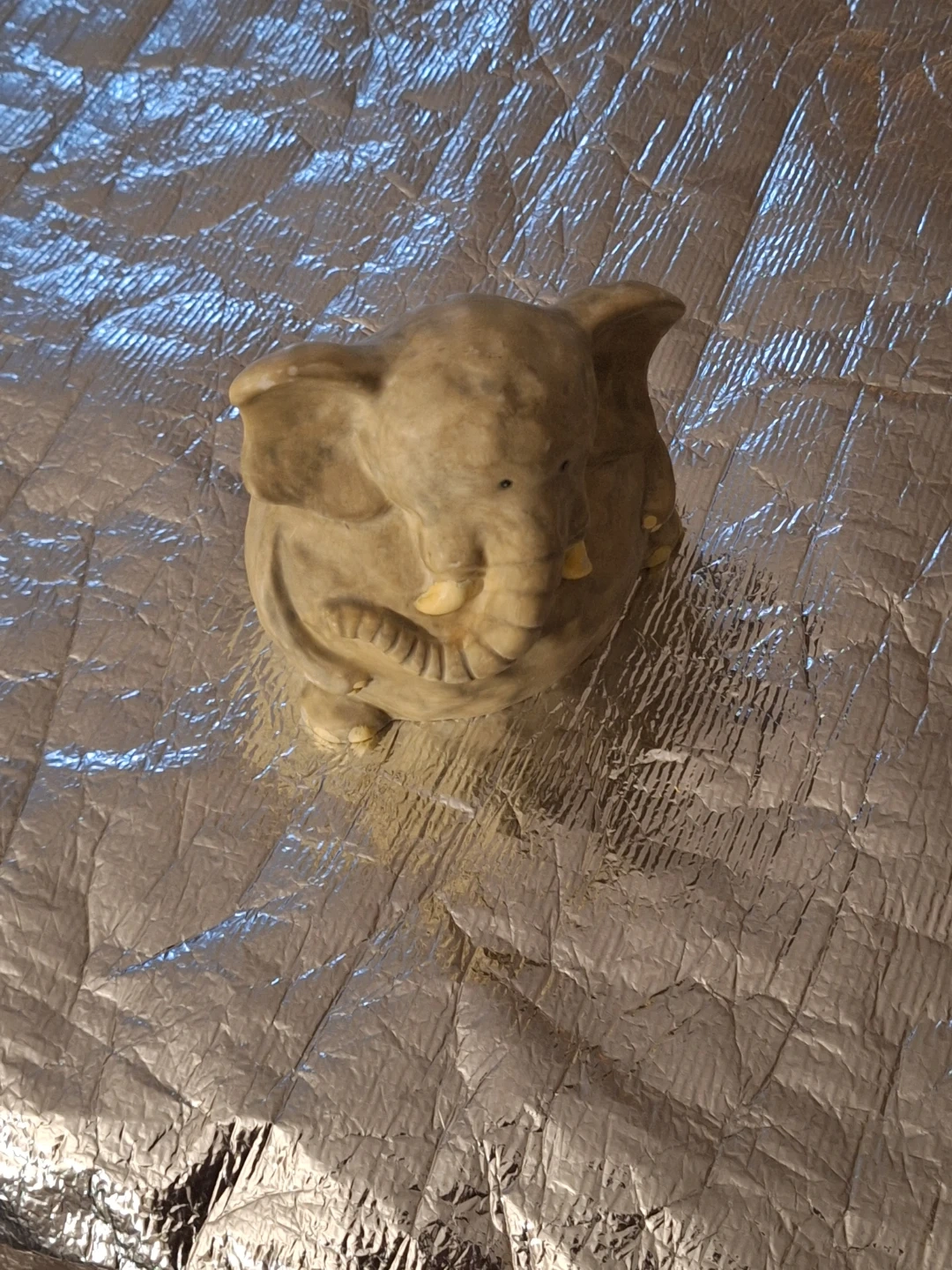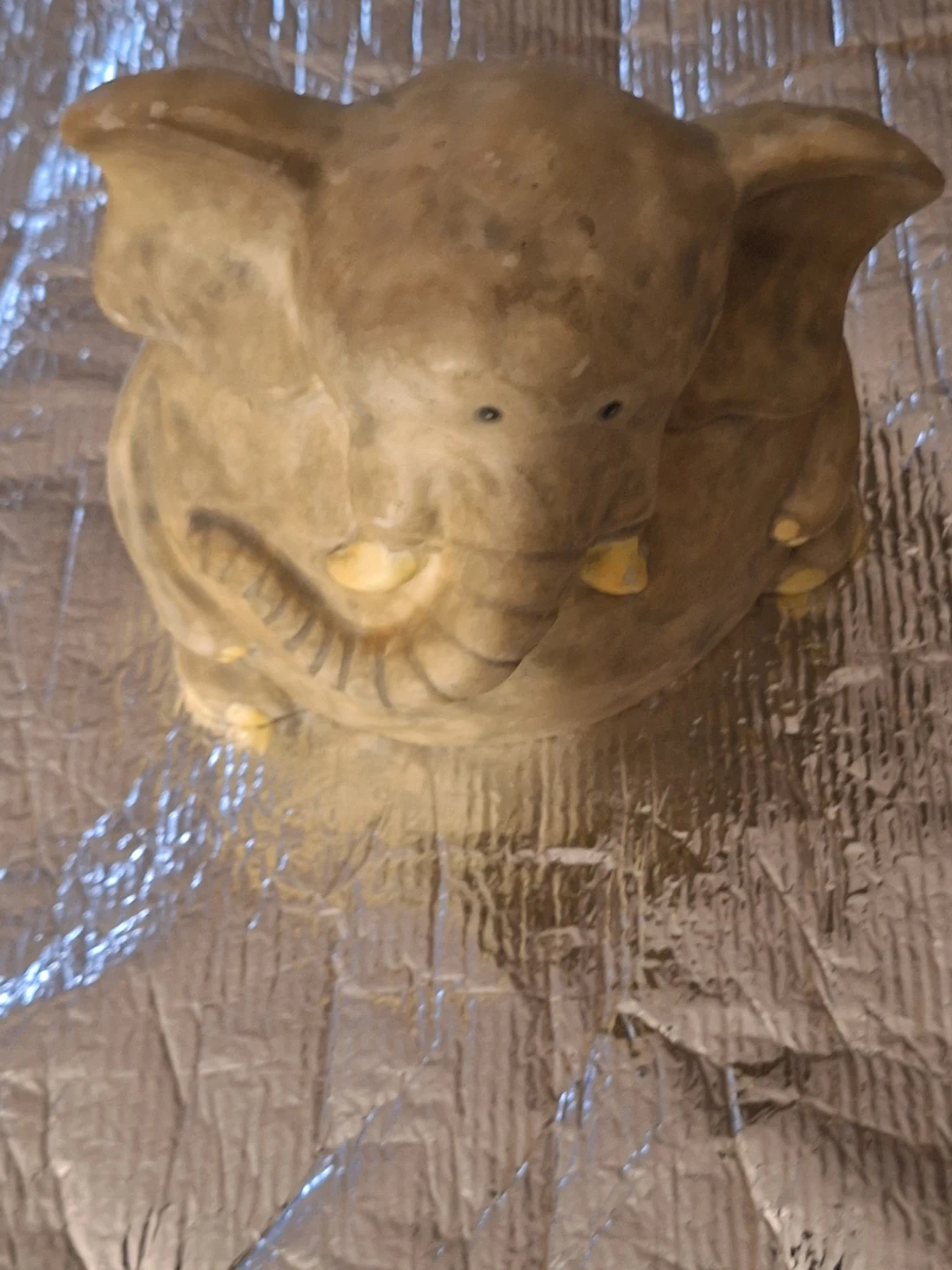 This is a ceramic coin bank shaped like an elephant. It's a classic design for saving spare change. Perfect for a child's room or as a decorative piece!