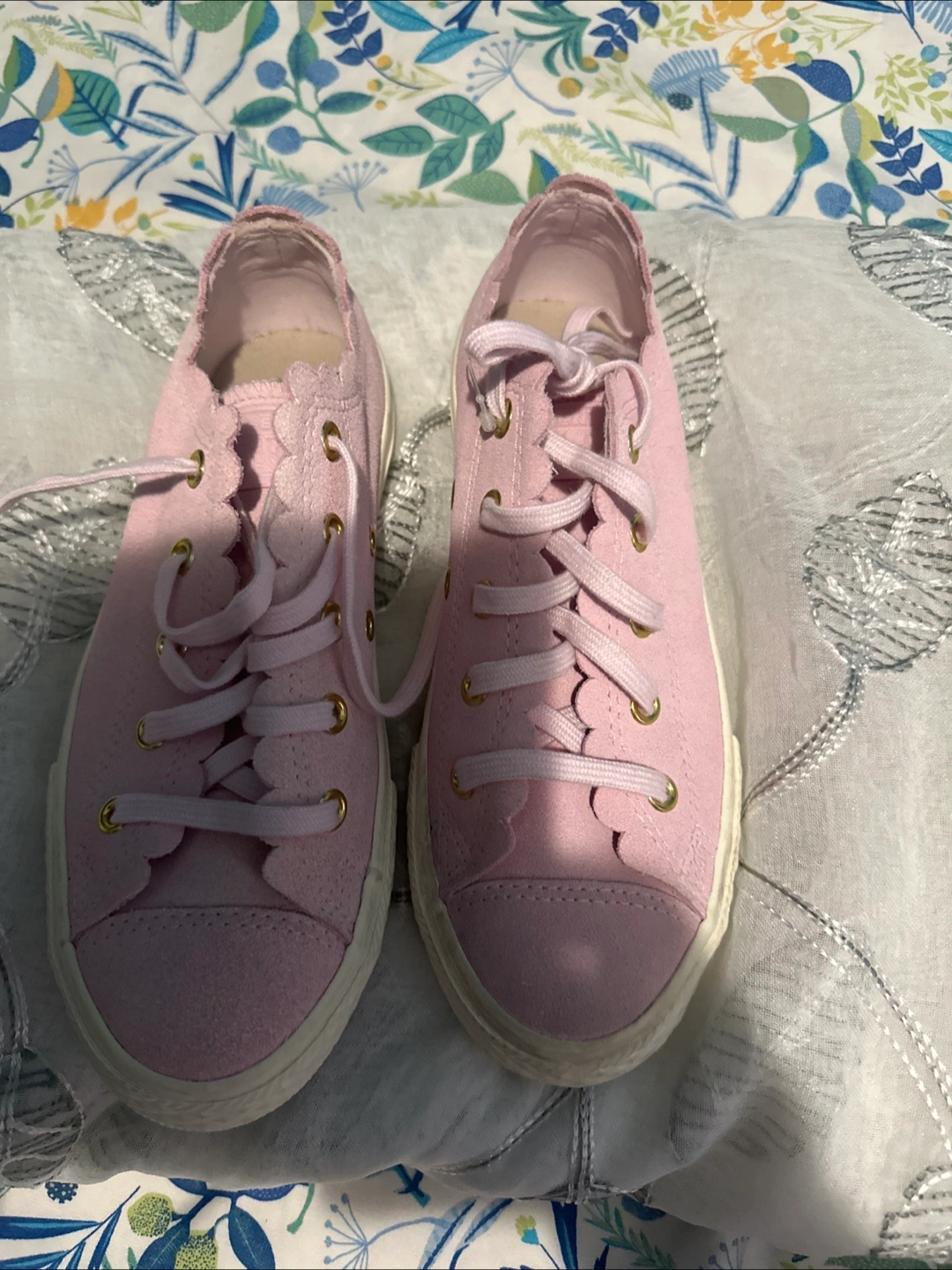 Selling a pair of pink Converse All Star sneakers in US women's size 2. They're in great condition and ready for a new home! The color is a soft, pretty pink, perfect for adding a touch of color to any outfit