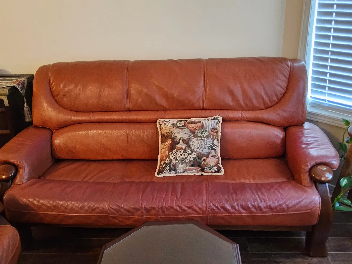 I am selling leather sofa couch good condition comfortable elegant and ready to find home