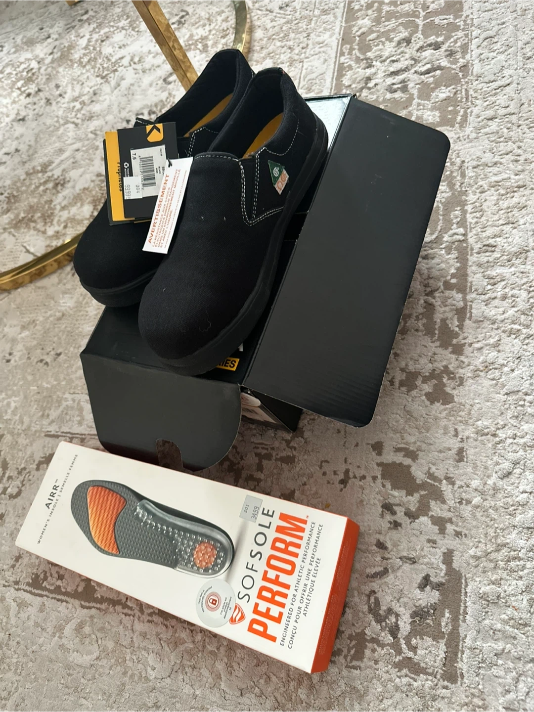 Comes with SofSole Perform insoles, engineered for athletic performance. These shoes are a size 7.5.