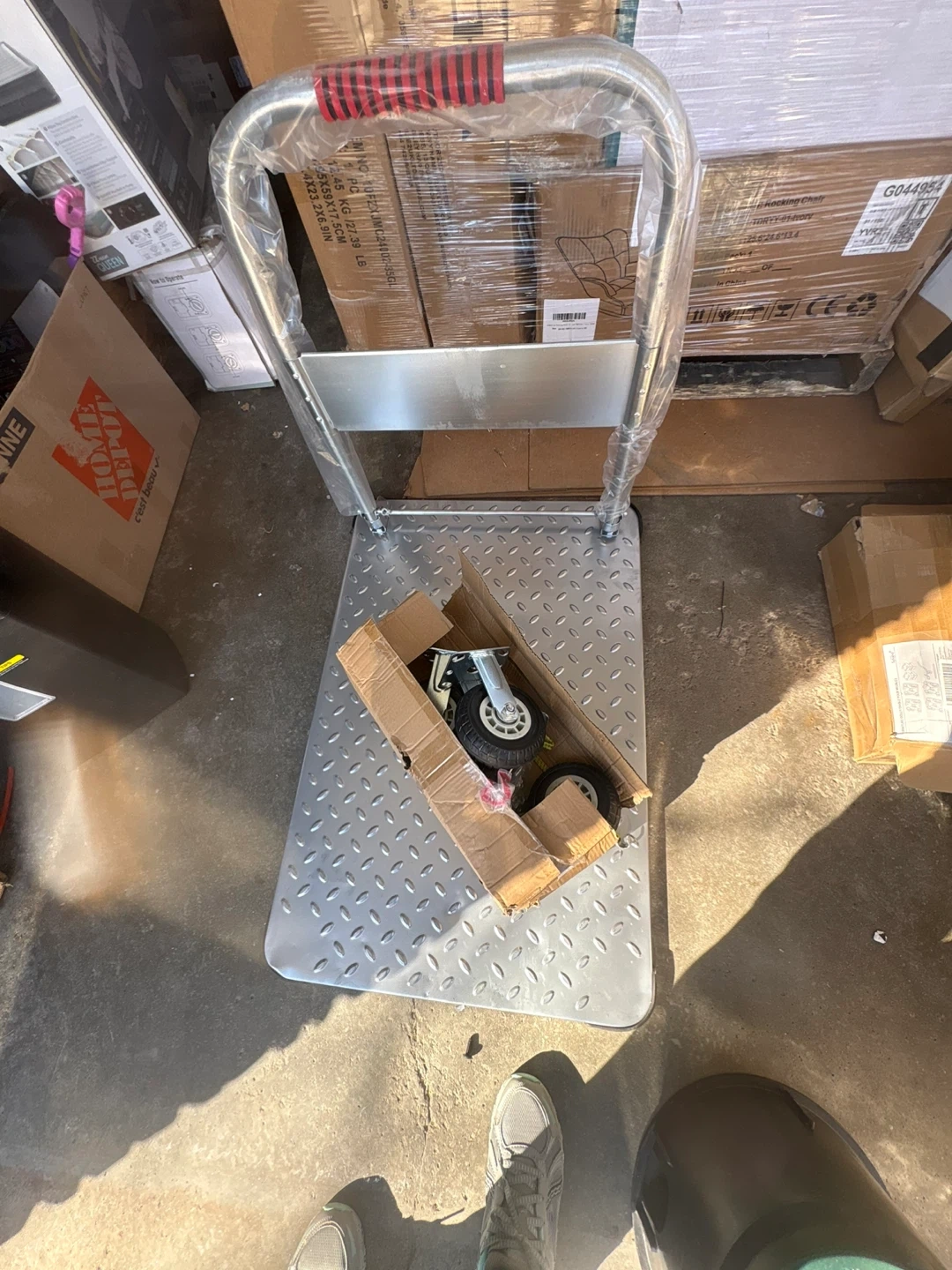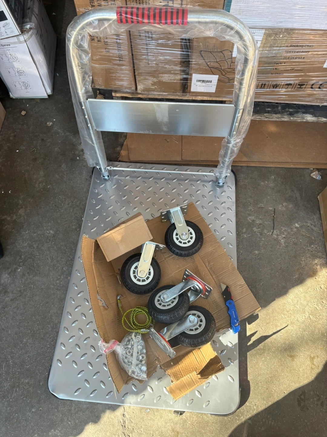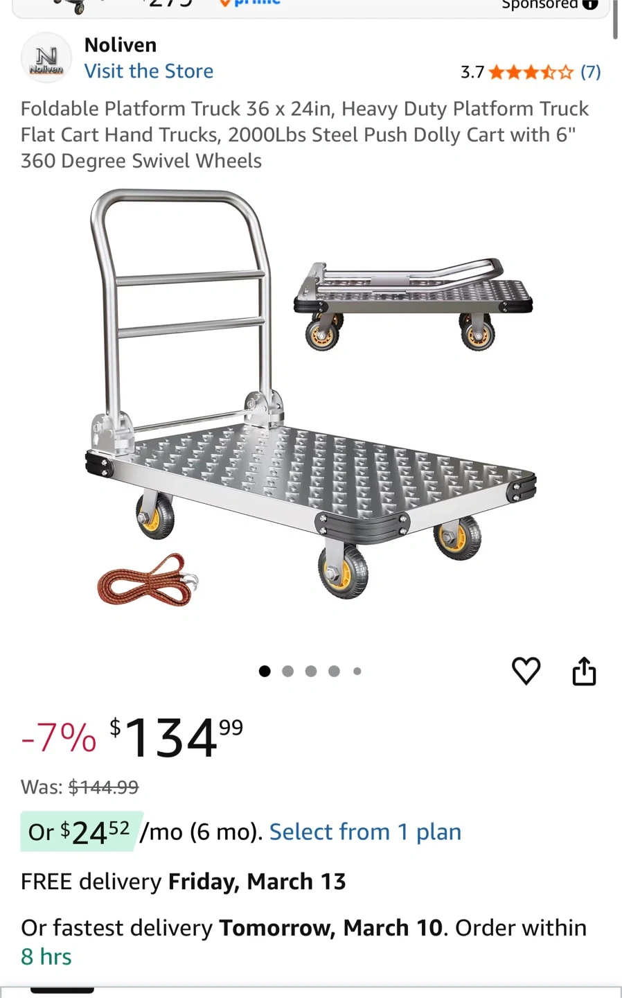 This Noliven foldable platform truck is designed for heavy-duty use. It features a durable steel construction and 6-inch swivel wheels for easy maneuverability. The cart can be folded for convenient storage. It has a weight capacity of 2000 lbs.