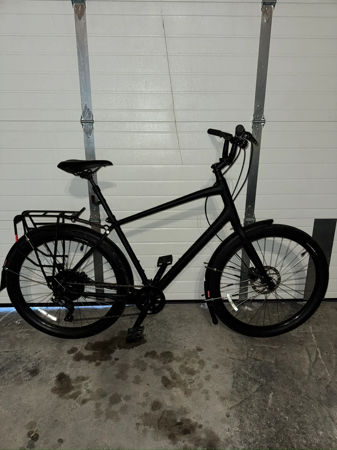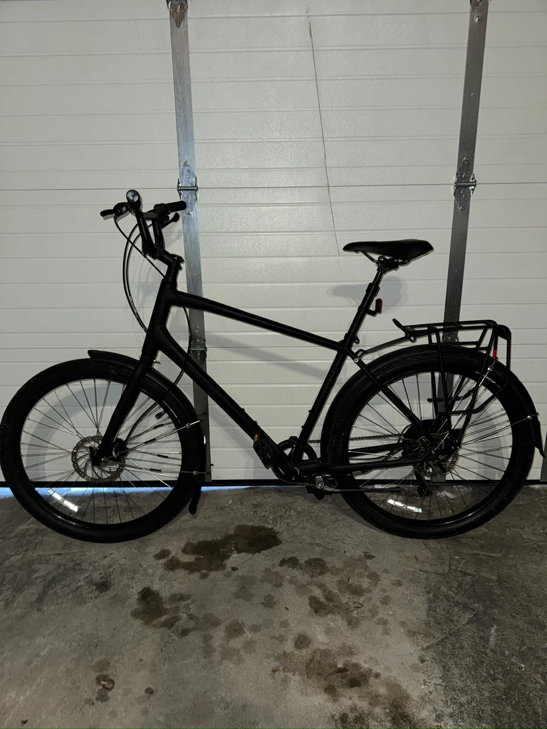 Selling my XL bike. Great for getting around town, school, or work. It has a rear cargo rack, perfect for a backpack or panniers, and fenders to help keep you clean in wet weather. Features 700c wheels and a comfy upright riding position. Size: XL. Rear rack included. Front + rear fenders.
