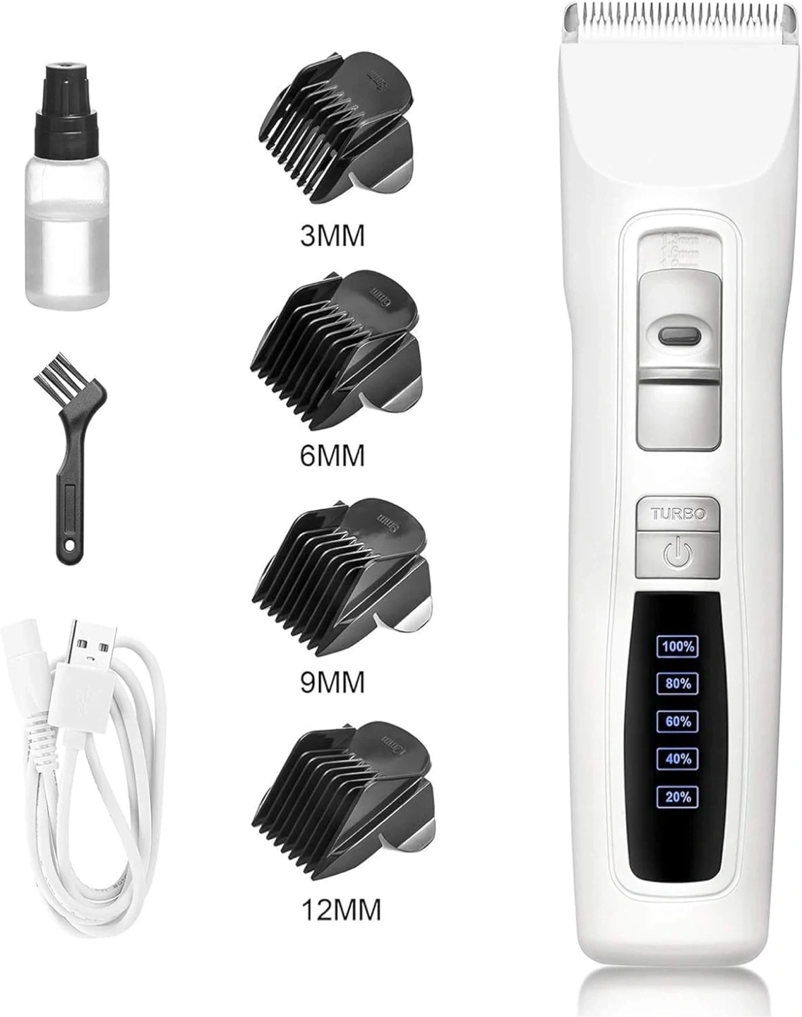 Brand new pet grooming clippers with ceramic blade, USB charging, and ultra-quiet operation. Includes turbo mode, adjustable settings, and multiple comb attachments for different coat lengths. Suitable for dogs and cats. Easy to use at home.
