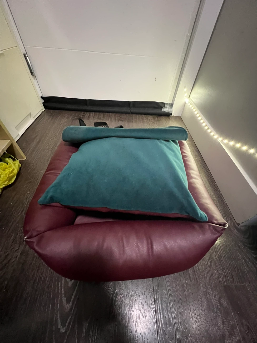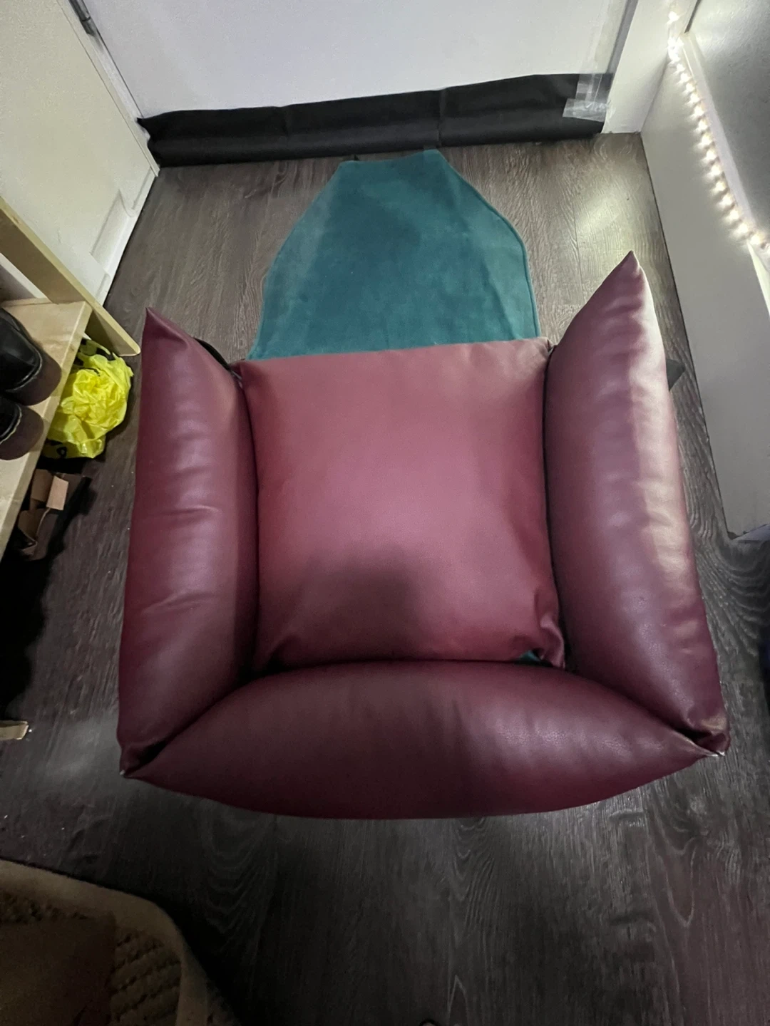 β’ Ethics Meets Elegance: Crafted with rich, weather-resistant burgundy vegan leather and a signature teal velour interior.