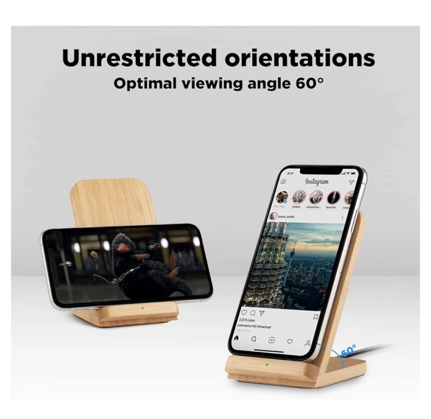 Phone Stand Design: Place or charge your phone vertically or horizontally. Ideal for use with Face ID, keeping track of messages, or watching videos.