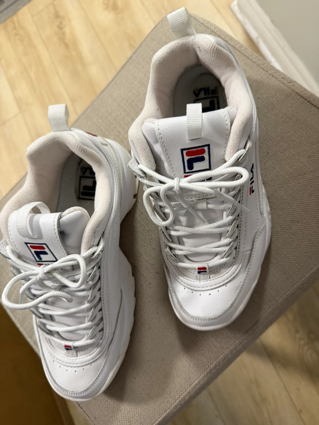 White Fila Disruptor Sneakers - Size 8.5 US