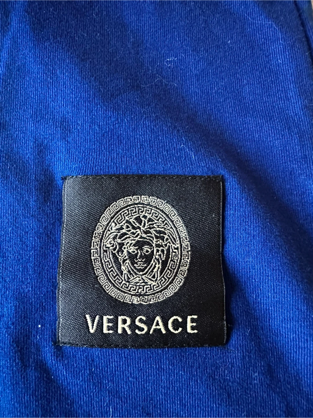 Blue Versace t-shirt with iconic Medusa graphic. It's made of cotton and comes with original tags. A stylish piece for anyone who appreciates designer wear.