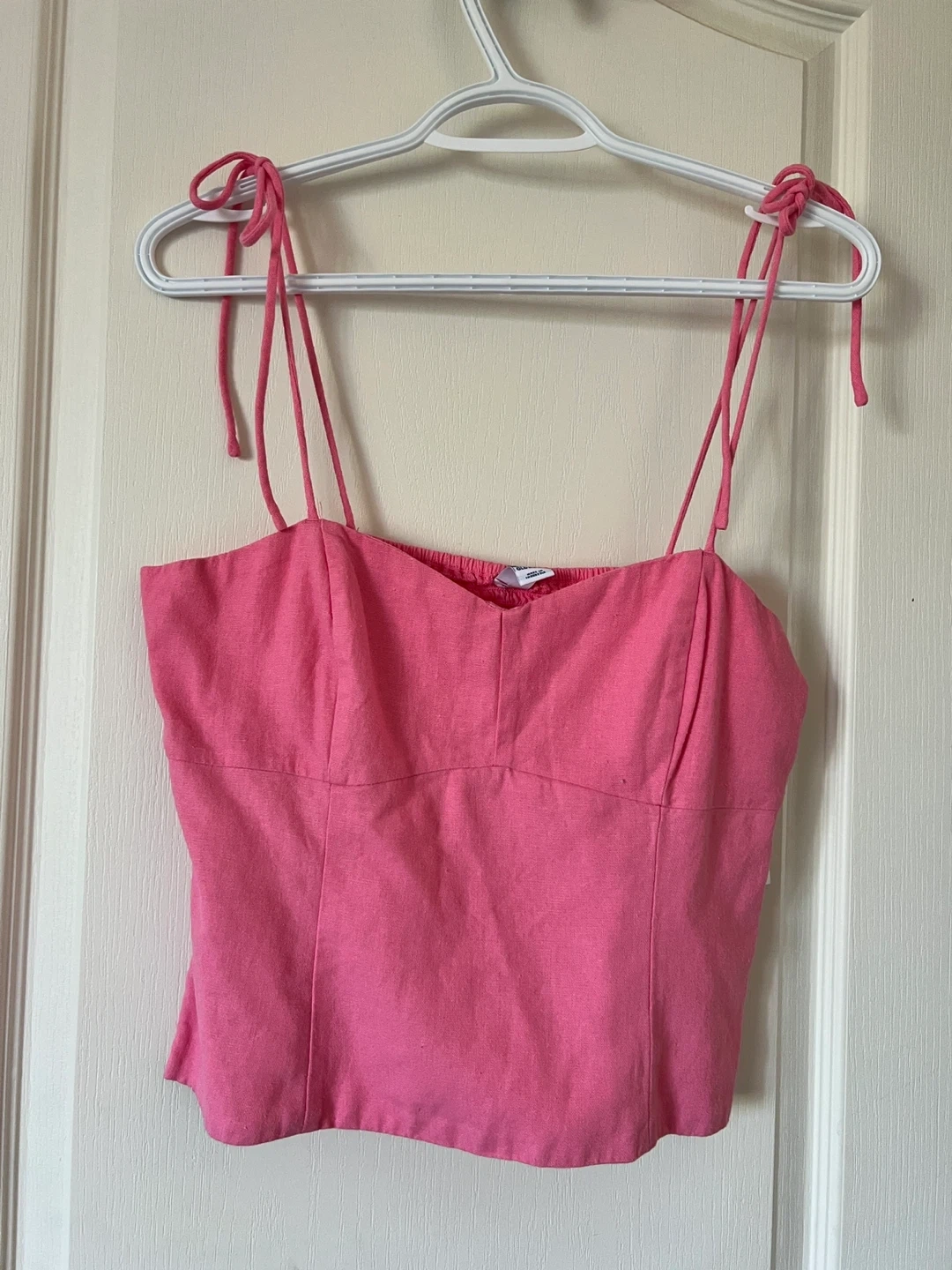 NEW WITH TAGS. Corset shaped, linen blend and is super comfy and breathable for summer. Shoulder ties for closure.