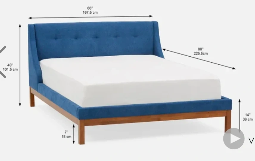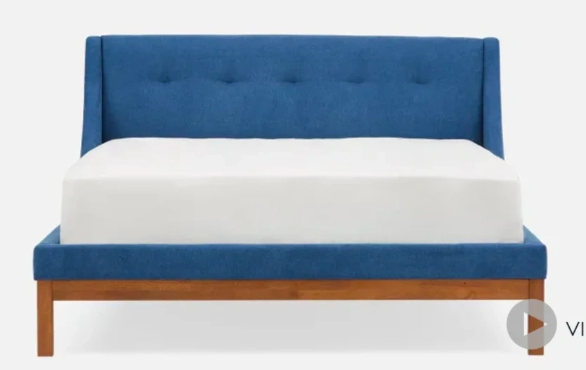 Selling a queen size bed frame with a blue upholstered headboard and frame! The frame is in great condition and ready for a new home!