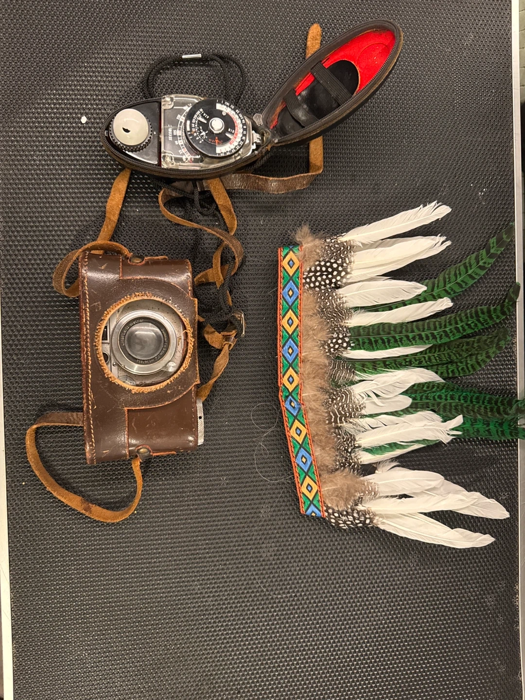 Sekonic Light Meter and Vintage Camera with Leather Case