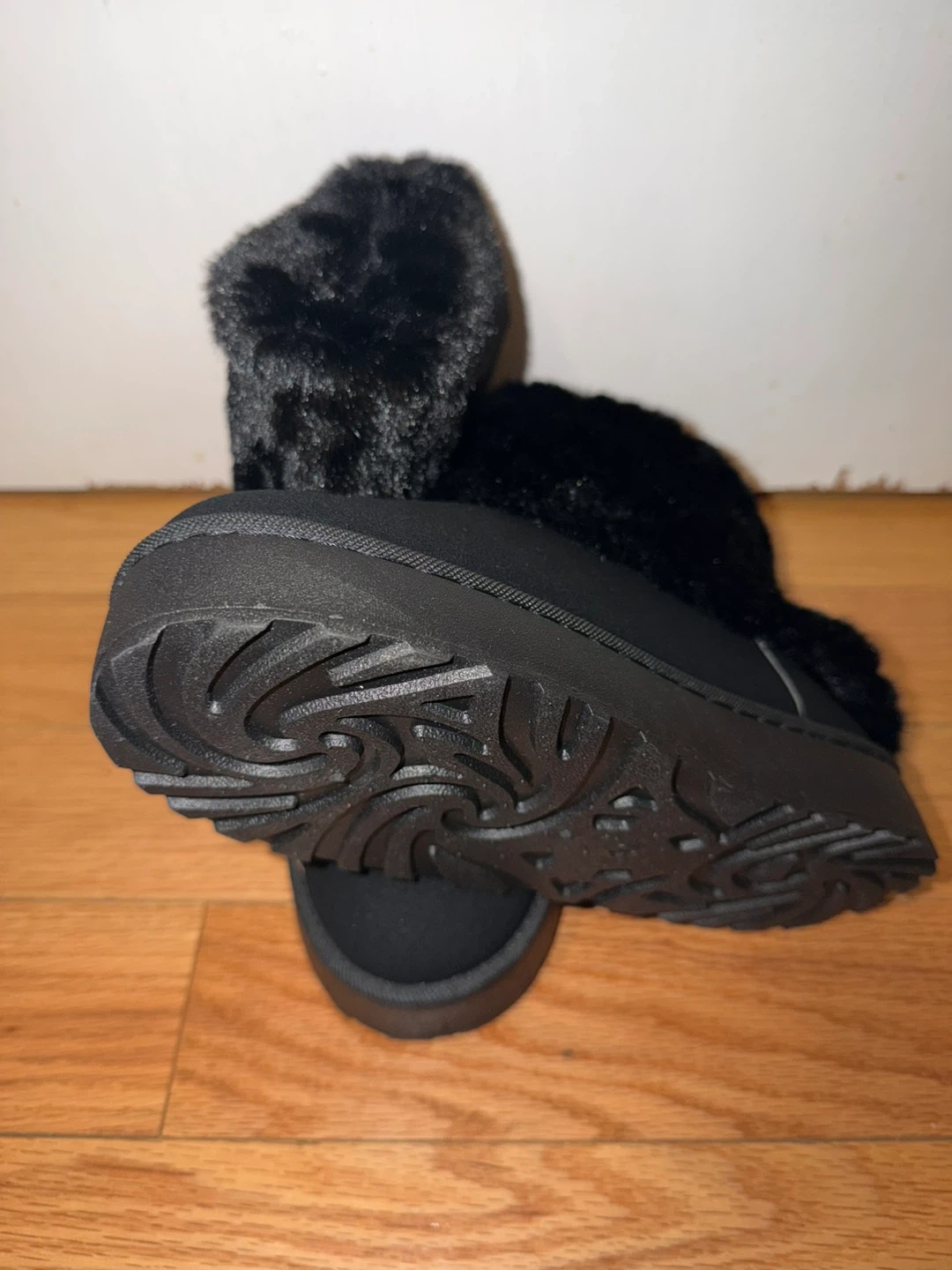 Black boots with faux fur lining. These boots have a durable rubber sole for traction. Size 40.