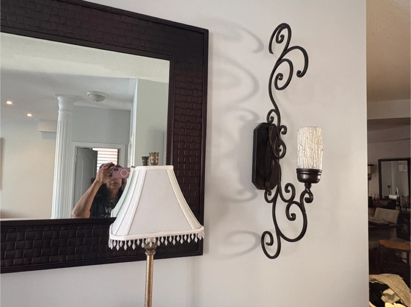 Mirror and wall sconce