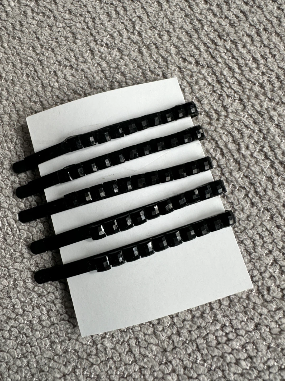 Set of five black hair clips , These pins are great for securing hair. Black metal construction.