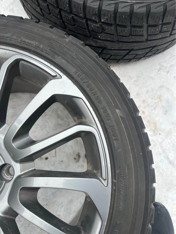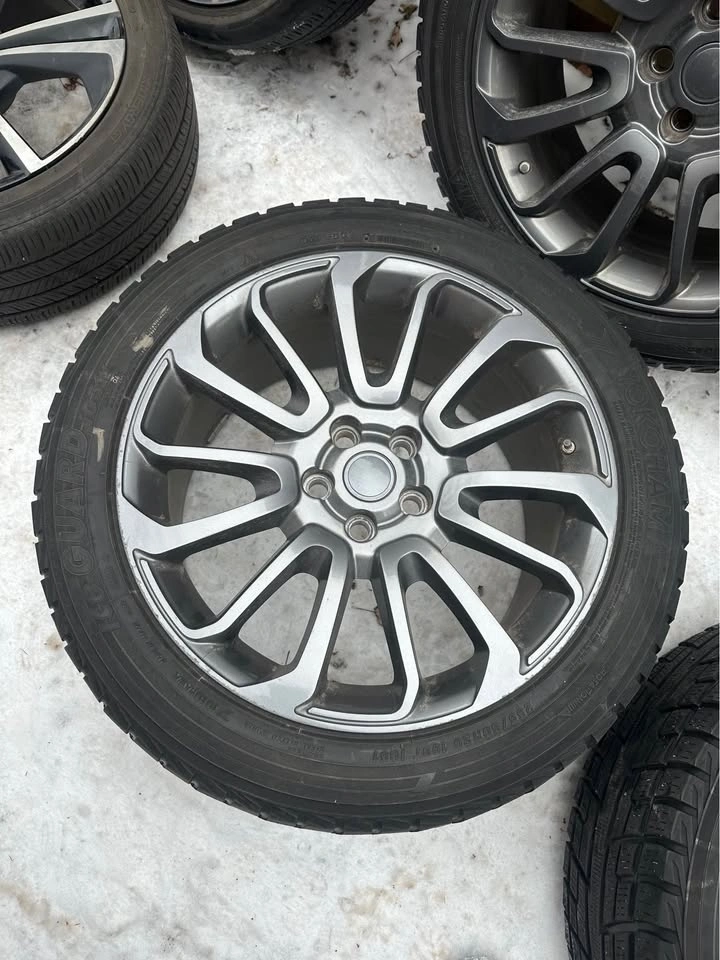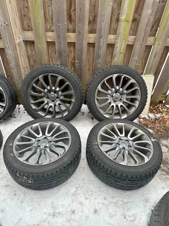 Set of 4 rims and M+S Yokohama Iceguard tires. Two tires have good tread, two have okay tread. Bolt pattern is 5x120. Came off a 2023 Range Rover Discovery. Tire size is 255/50R20. Asking $799 for the set. All prices are subject to HST. We accept credit, debit, e transfer, & cash! Pickup in Oakville.