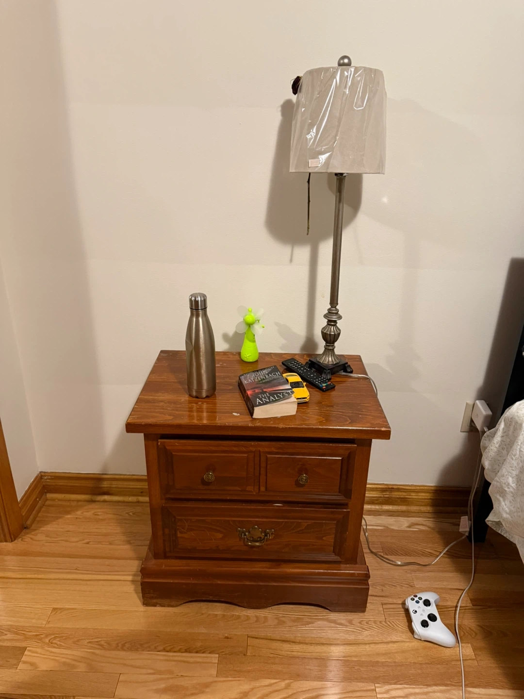 Selling a wooden nightstand with two drawers. It's in good condition and ready to use in your bedroom or living space. Perfect for storing books, lamps, or other bedside essentials