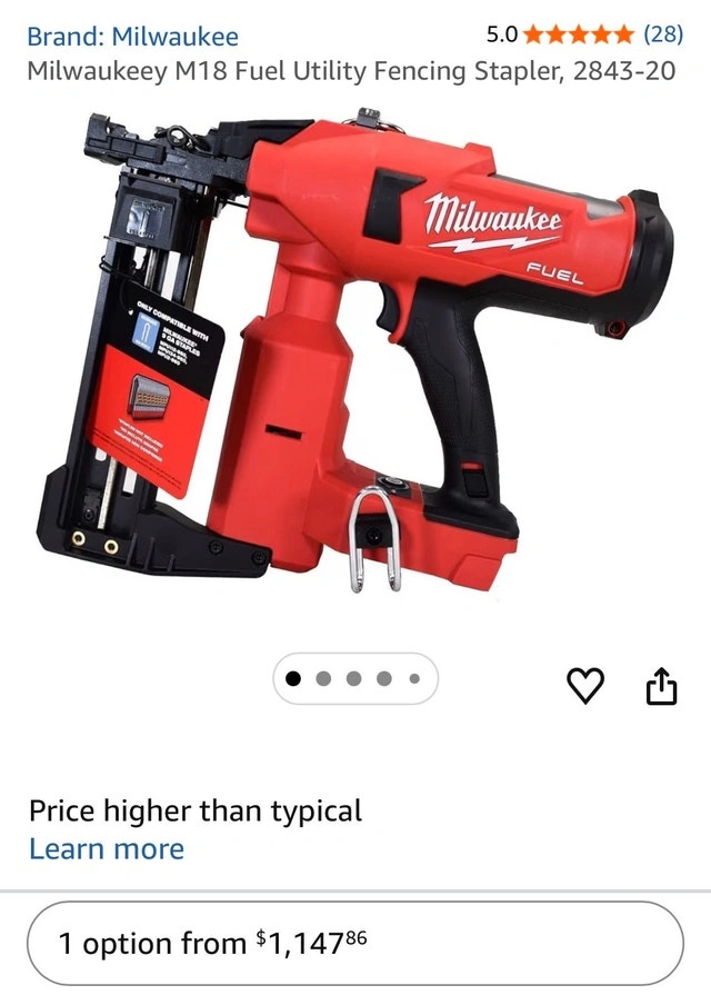 Brand new, never used Milwaukee 18V fence stapler. Comes with a $280 box of 1000 staples. Save hundreds of hours on spring fencing. This is a great tool. Check reviews online for more info. Come get it!