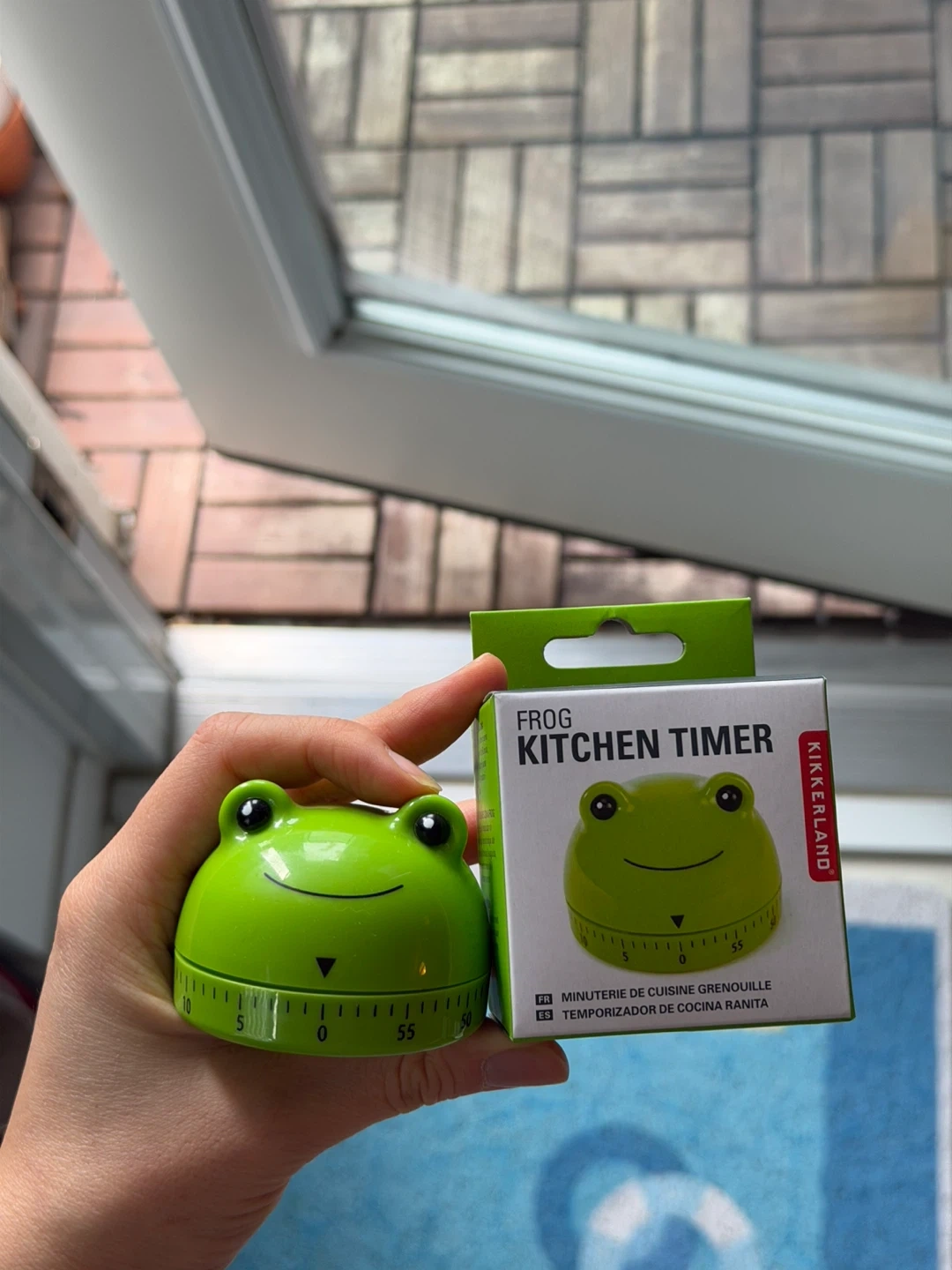 This is a fun frog-shaped kitchen timer. It's green and designed to help you keep track of cooking times. The timer goes up to 60 minutes. Brand new got gifted this but have a timer already.