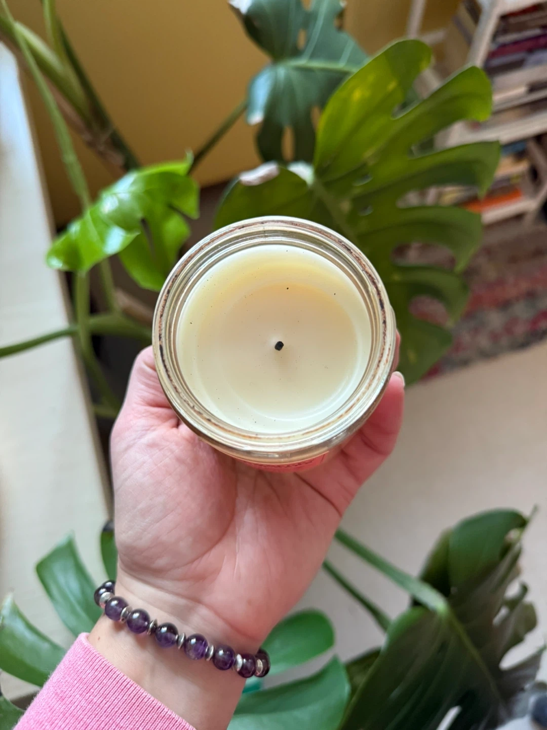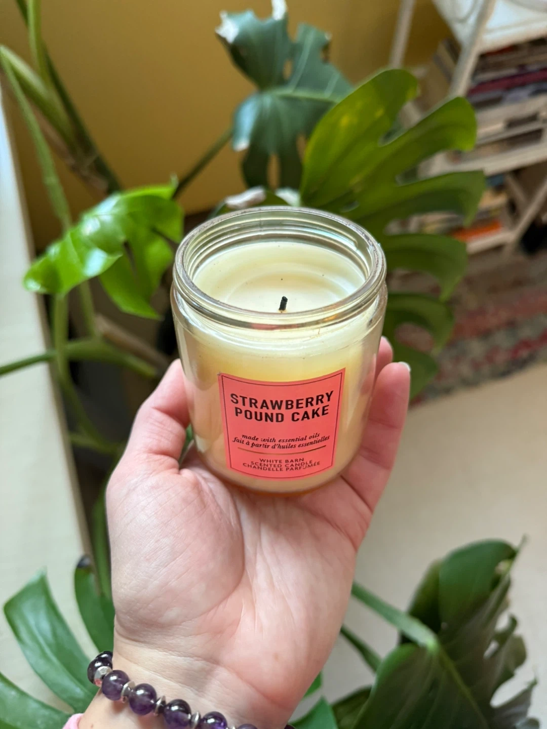 A creamy, sweet scented candle with notes of strawberry and cake.