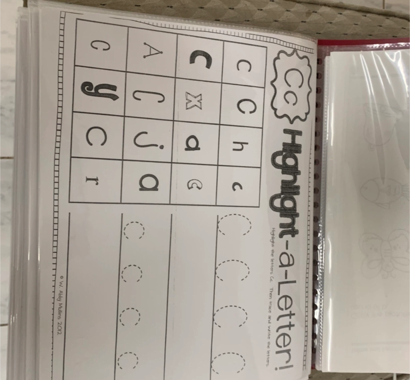 Alphabet tracing and highlighting worksheets for all age groups. Includes practice for letters A, B, and C with corresponding words and images. The material is designed for learning the alphabet.