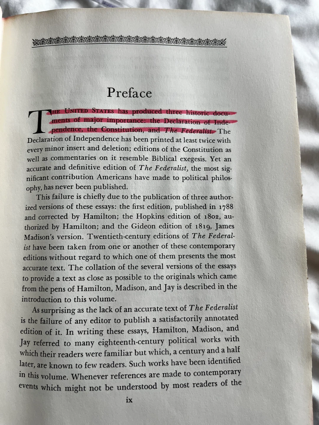 The Federalist Papers by Jacob E. Cooke Hardcover Book