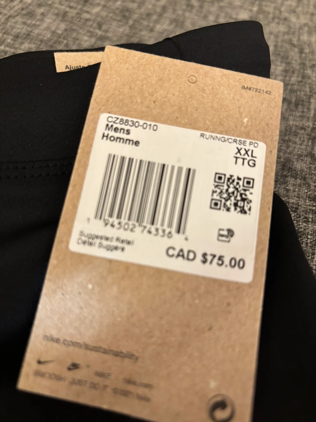 Nike men's running tights in black. Size XXL. These tights offer a comfortable fit for your runs. They're made from a durable fabric. Suggested retail price was $75.00.