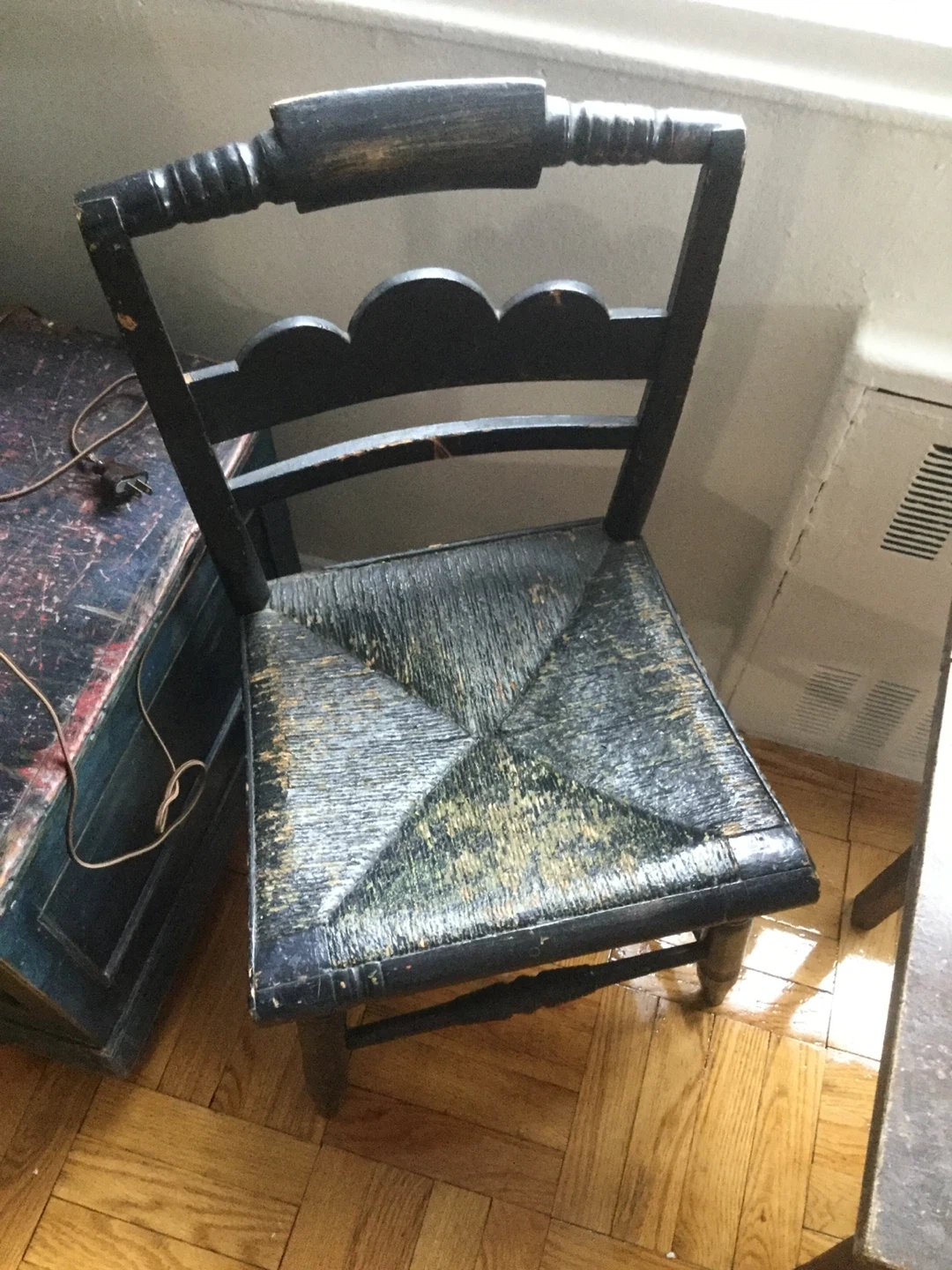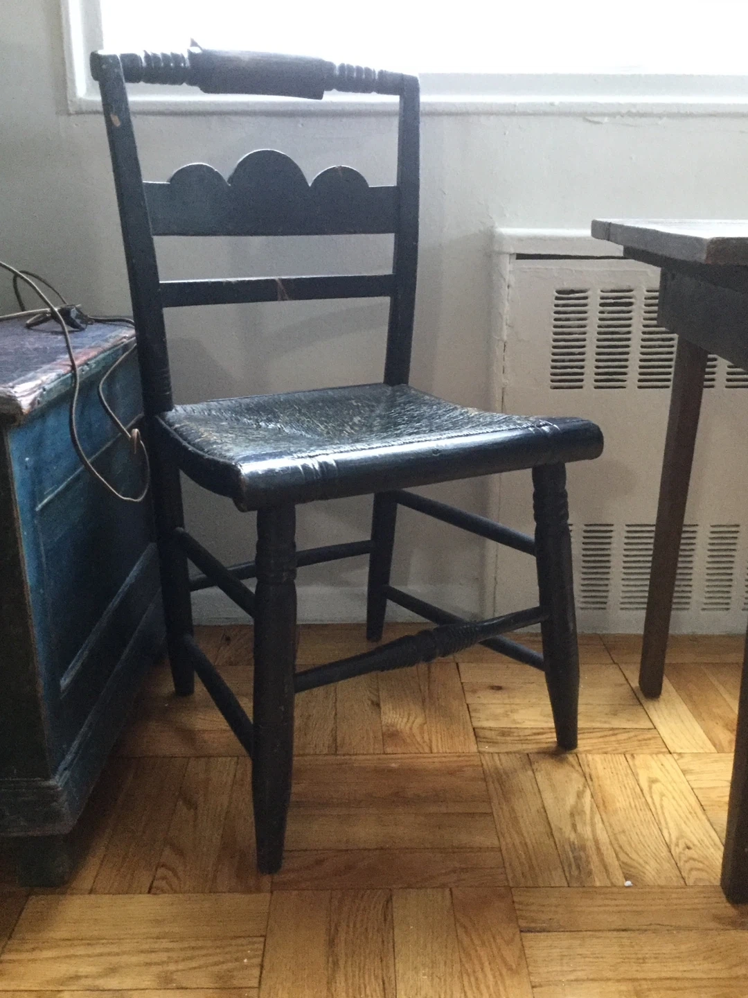 Primitive Antique Black Wooden Chair