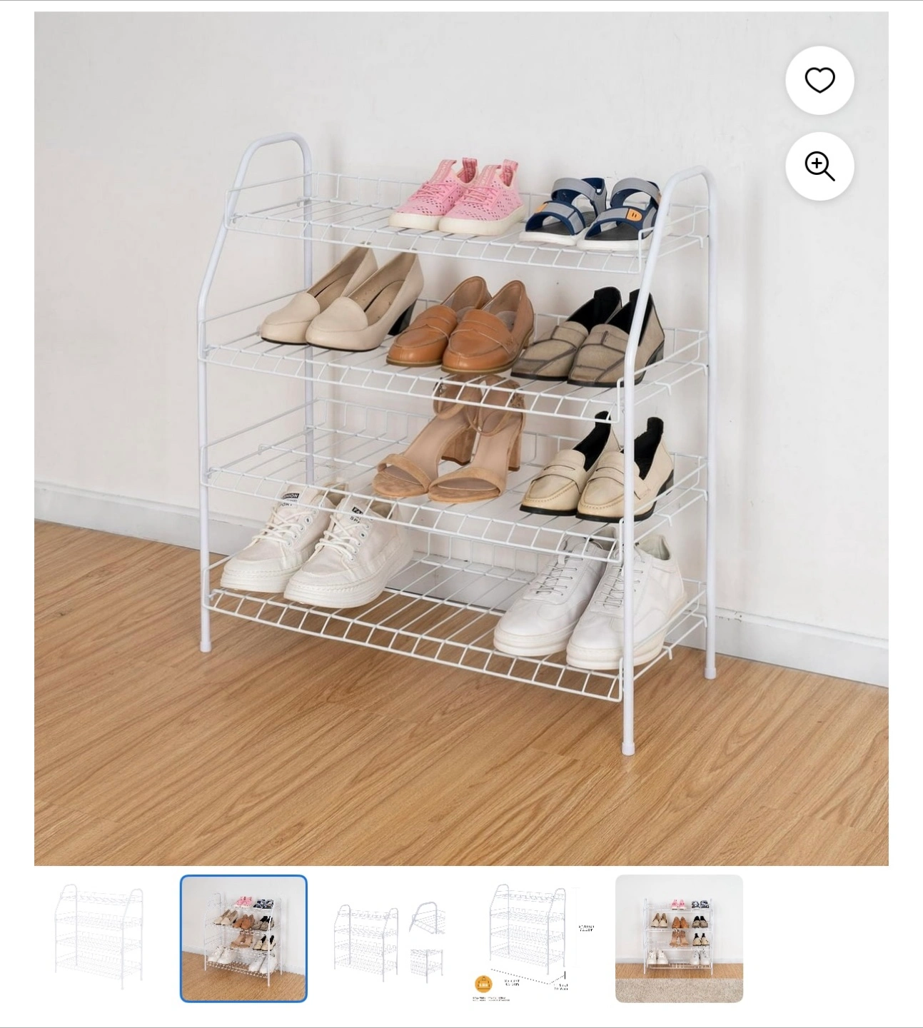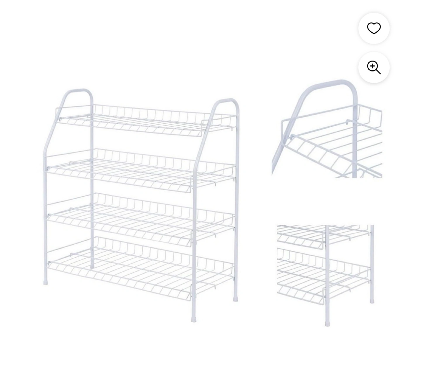 Keep your shoes organized with this handy 4-tier metal shoe rack! It's perfect for entryways, closets, or anywhere you need extra shoe storage. The rack is a clean white colour and made of durable metal. One tier is missing.
