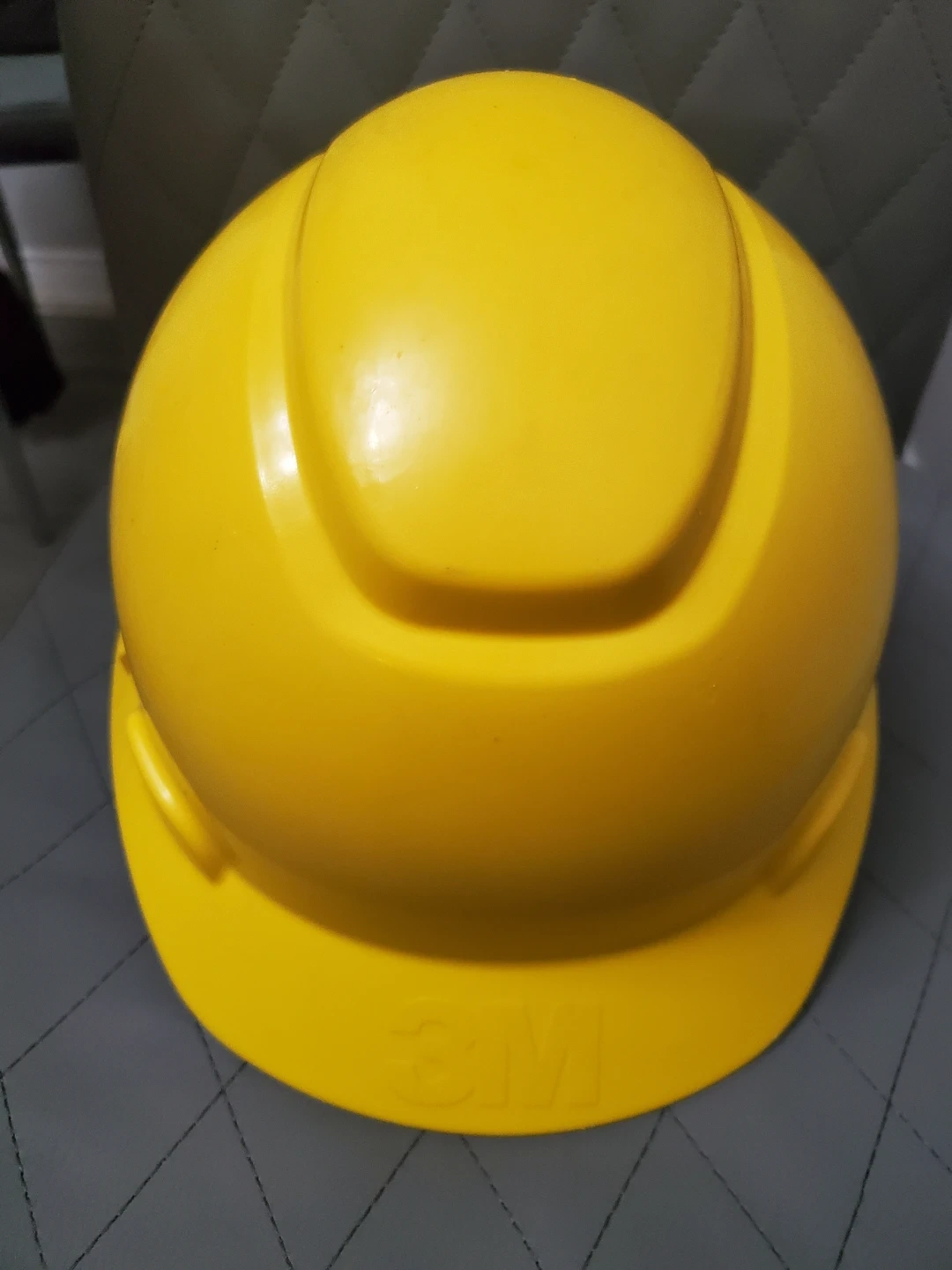 This is a yellow 3M hard hat. It features an adjustable suspension system for a comfortable fit. It's designed for head protection on job sites.