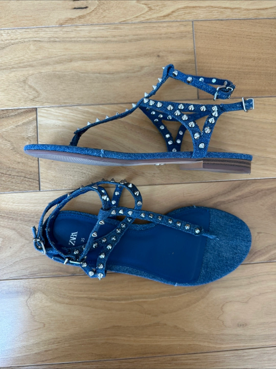 Zara Denim Studded Sandals, Size 35