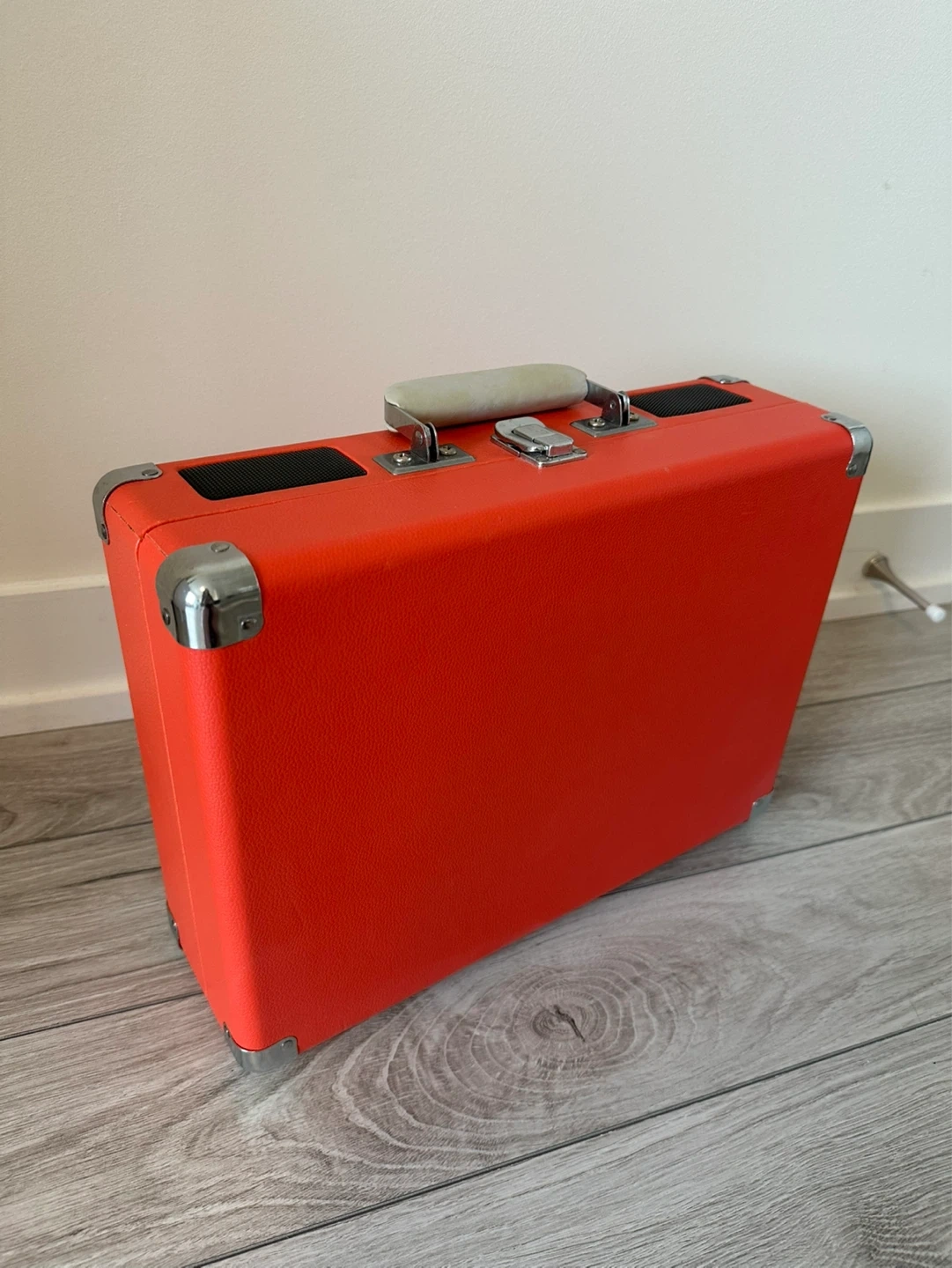 • Features: 3-speed play (33 1/3, 45, 78 RPM), built-in speakers, headphone jack, and RCA output.