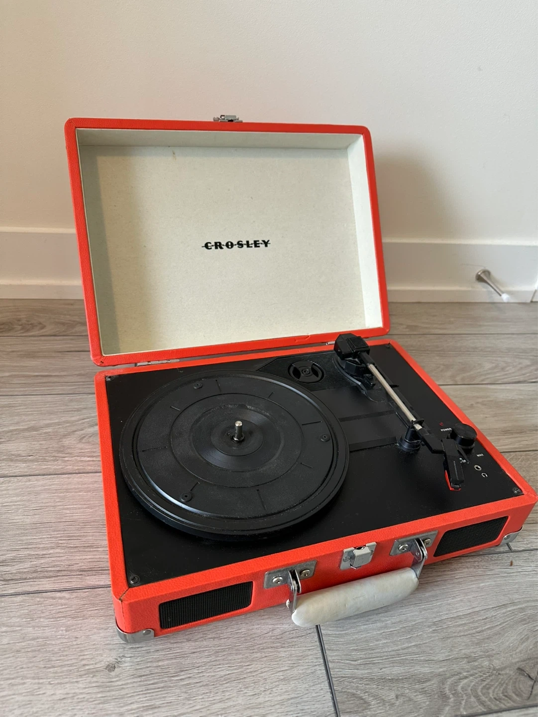 Add a pop of color to your music setup with this classic Crosley Cruiser suitcase record player. It features built-in speakers for an all-in-one listening experience and a portable design that makes it easy to bring your vinyl collection anywhere.