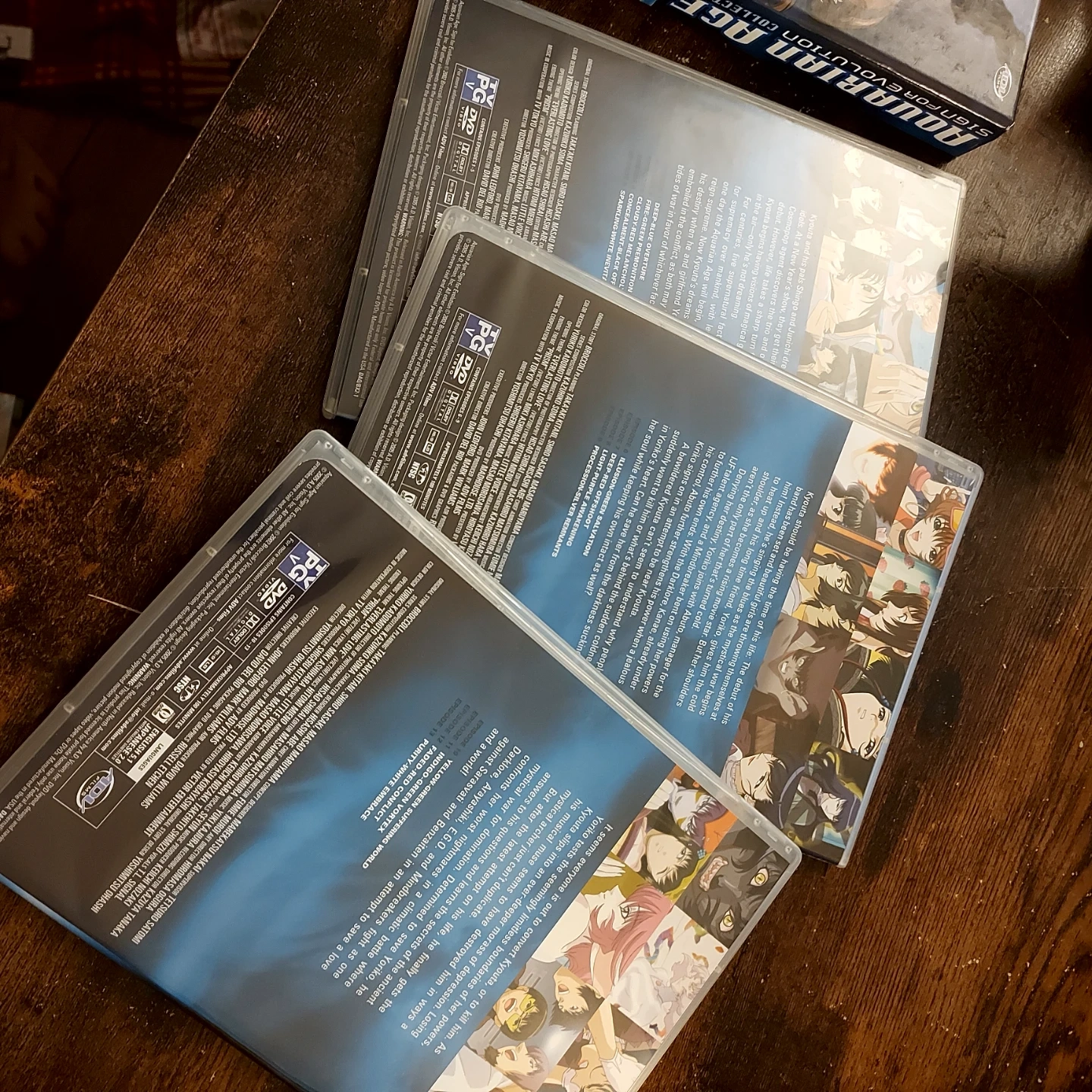 This is the complete Aquarian Age Sign for Evolution Collection DVD set. It includes three discs with the full anime series episodes 1-13. The set comes in its original slipcase. Some damage to box. Discs in like new conditon. Cash only. Price is firm. Pick up at Pape Station.