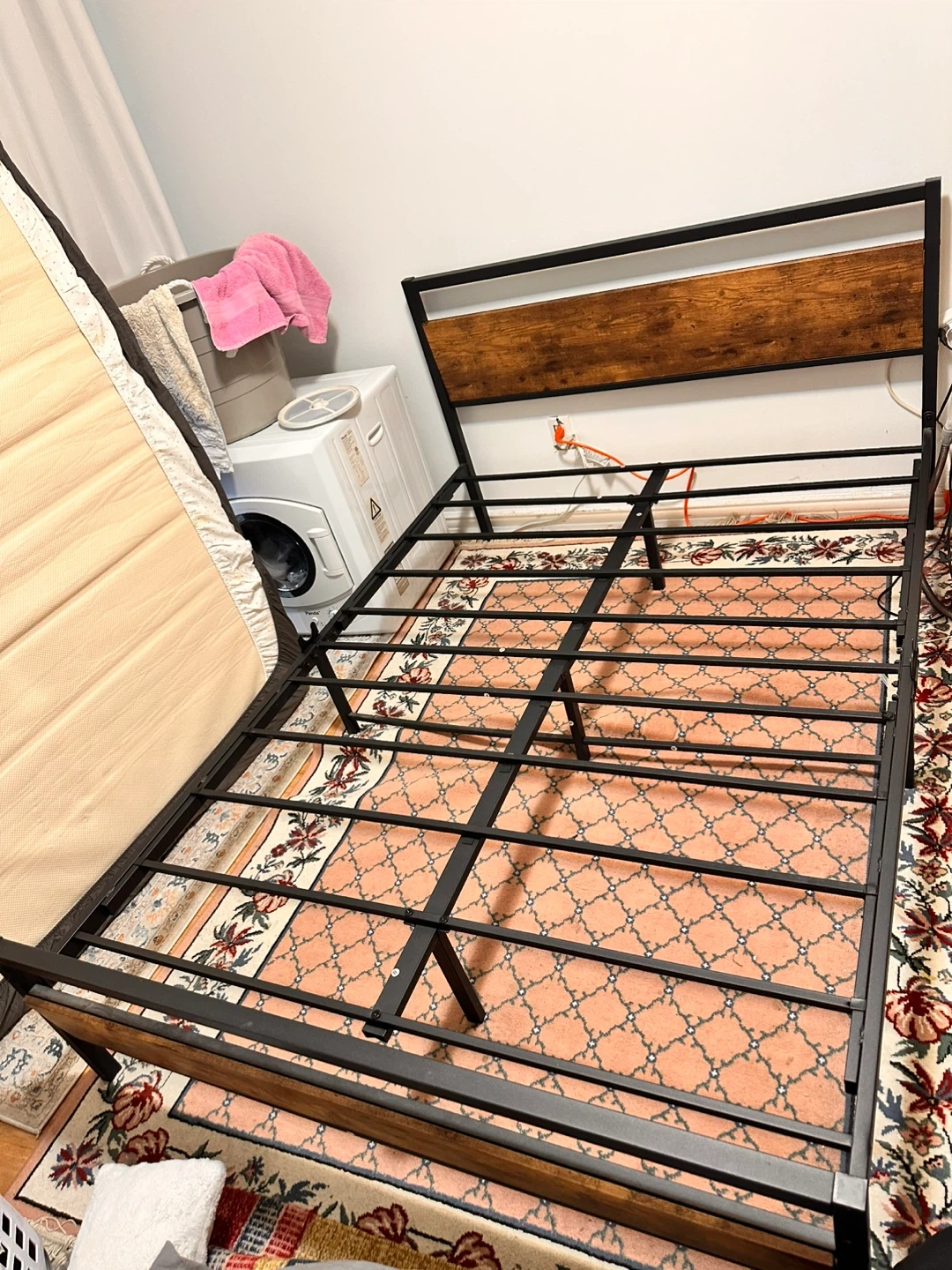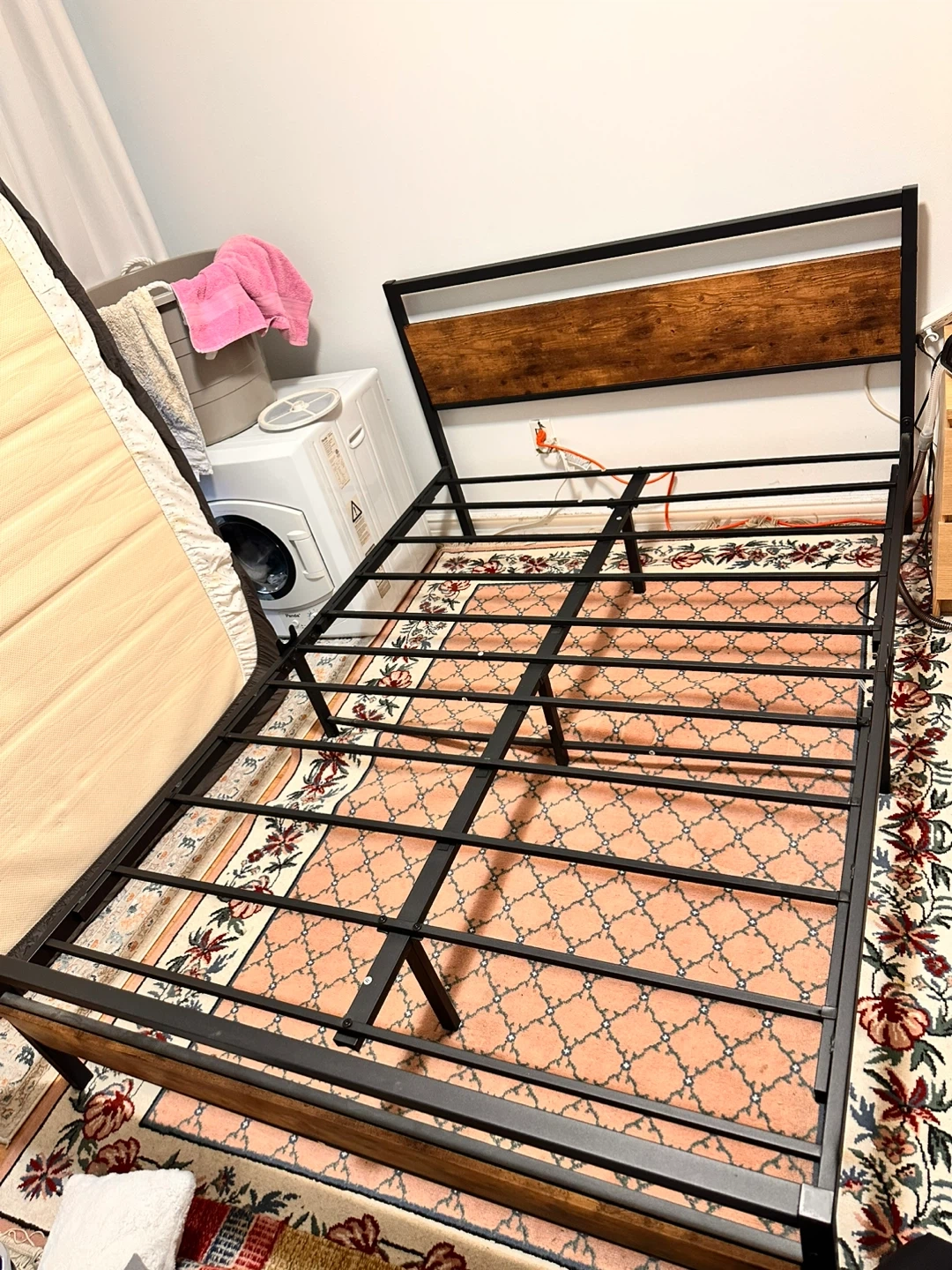• Same design as shown in photos (black metal frame with wooden headboard)