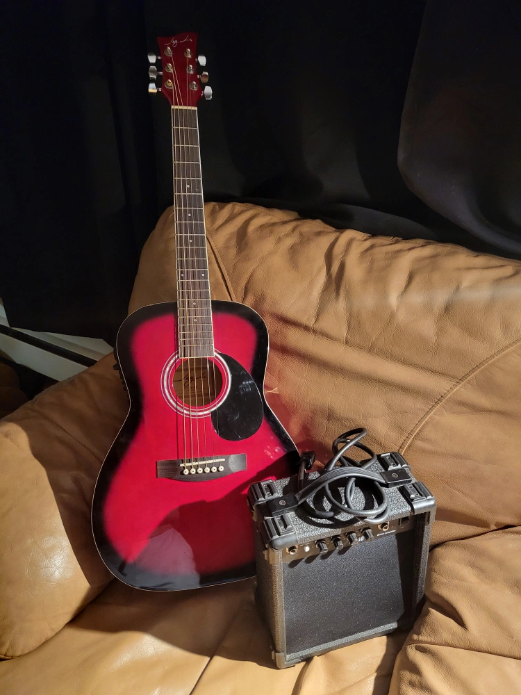 Hi! Selling a slightly used Jay Turser Jr 3/4 acoustic guitar with 10w amplifier for $170 or best offer