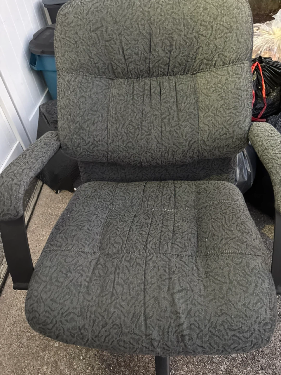 Office chair in gray color. It has a padded seat and back for comfort. It's in good condition and ready for your home office