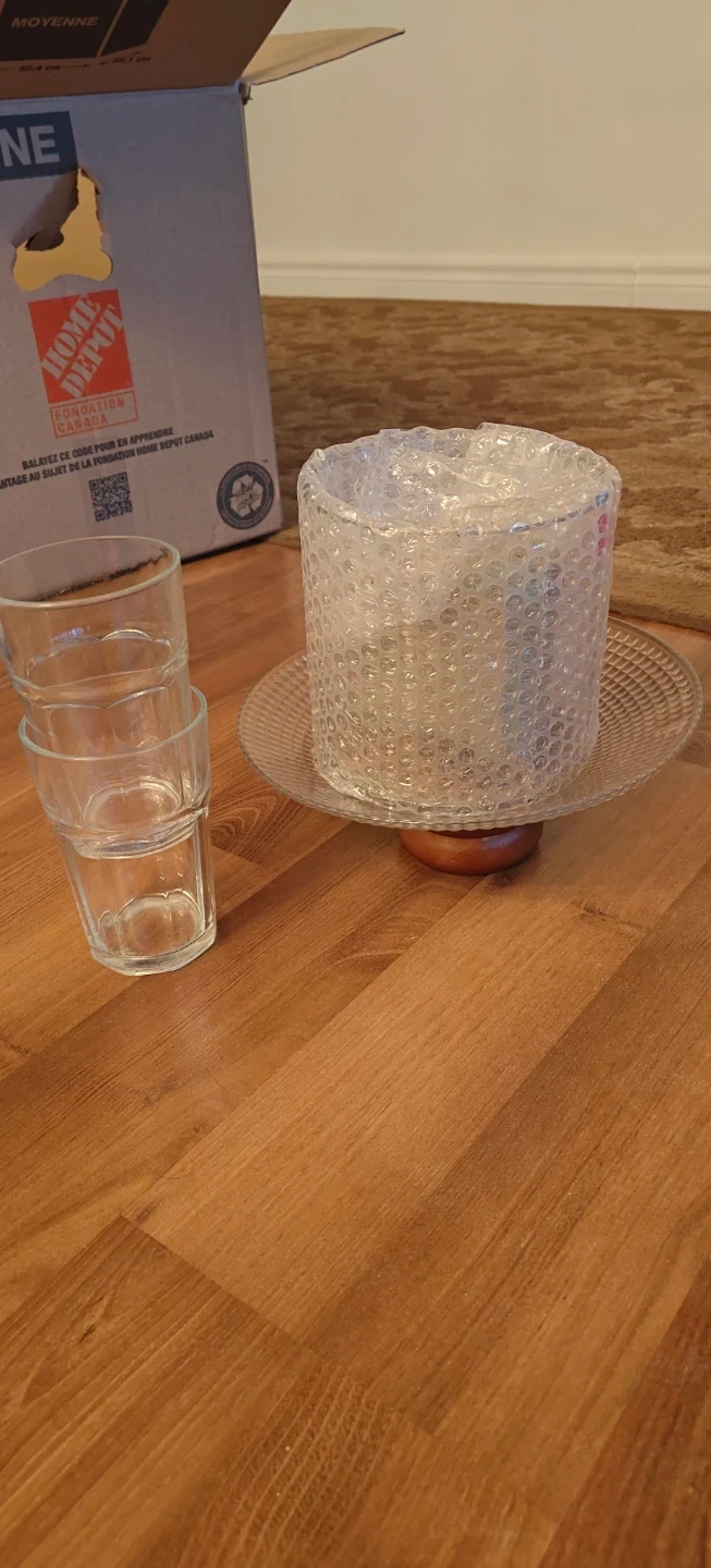 Selling a glass cake stand, still wrapped, along with some glasses. They're in great condition and ready for a new home!