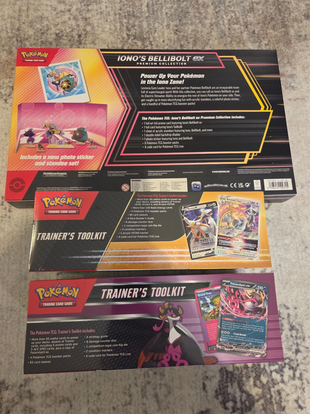 Trainer’s Toolkit 2025 (Fezandipiti ex): The latest toolkit featuring the high-demand Fezandipiti ex, 3 powerful ACE SPEC cards (Grand Tree, Hyper Aroma, Maximum Belt), and 4 booster packs.