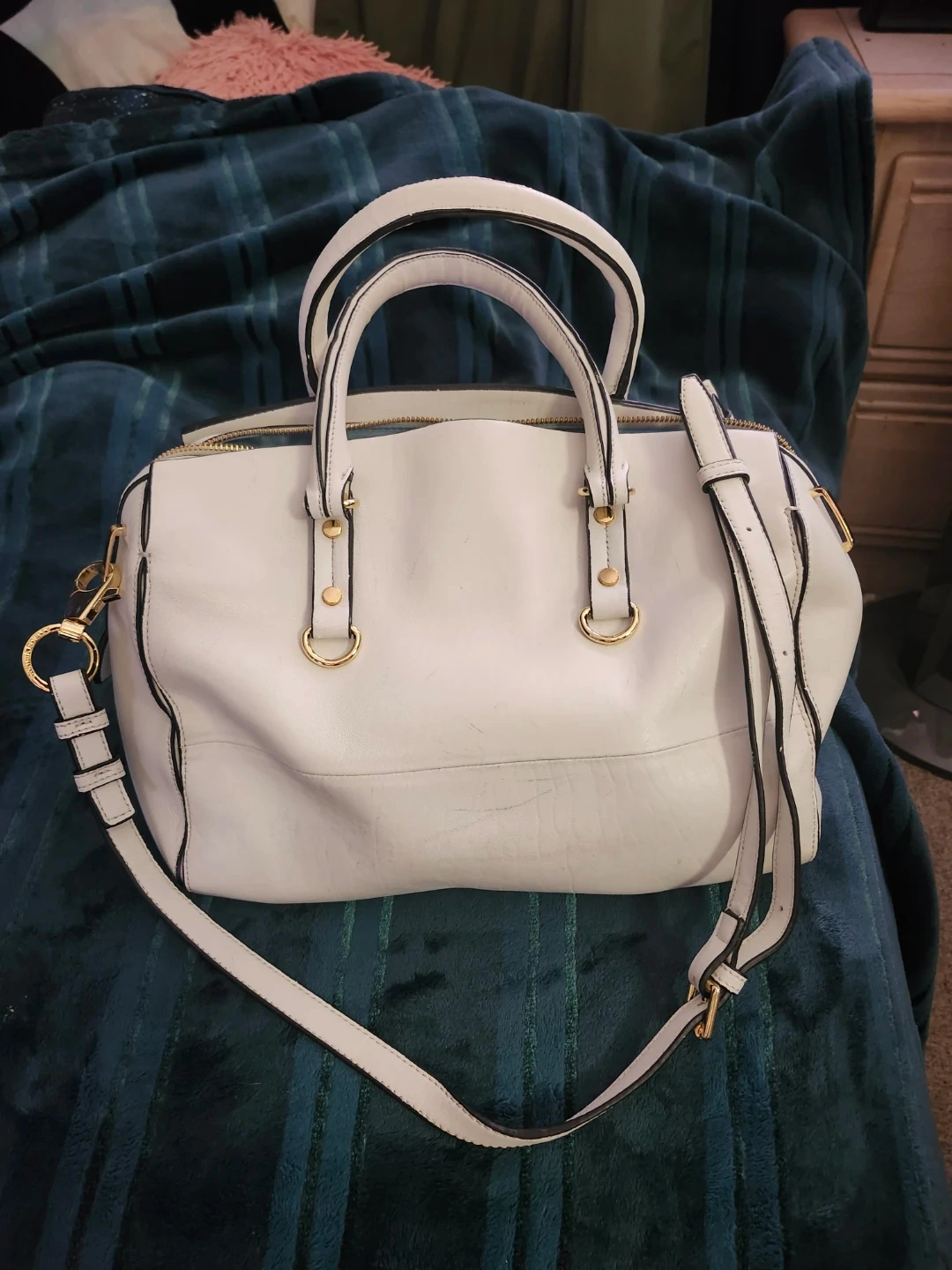 White Leather Satchel Handbag