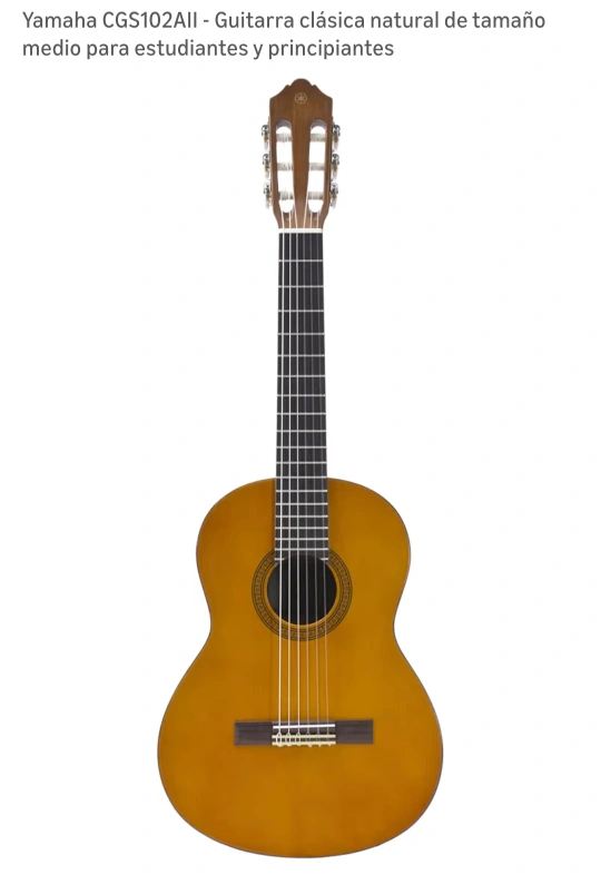 This is a Yamaha CGS102AII classical guitar. It's a natural wood color and medium size. This guitar is suitable for students and beginners.