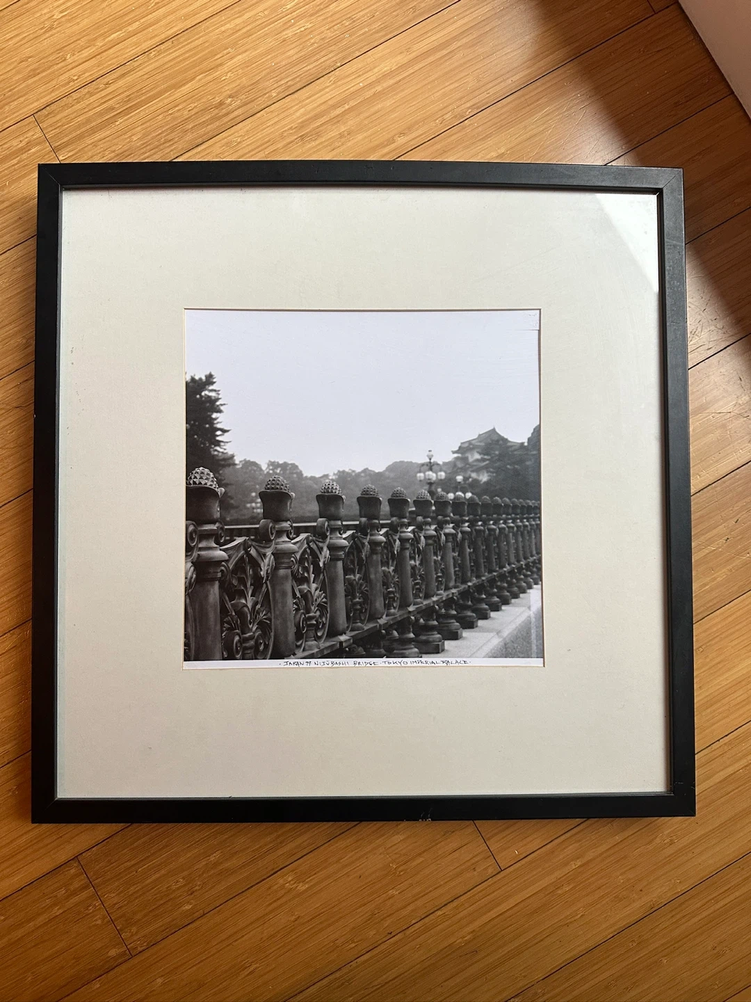 An original black & white photo of the imperial palace and bridge tokyo japan. Minor blemish top right