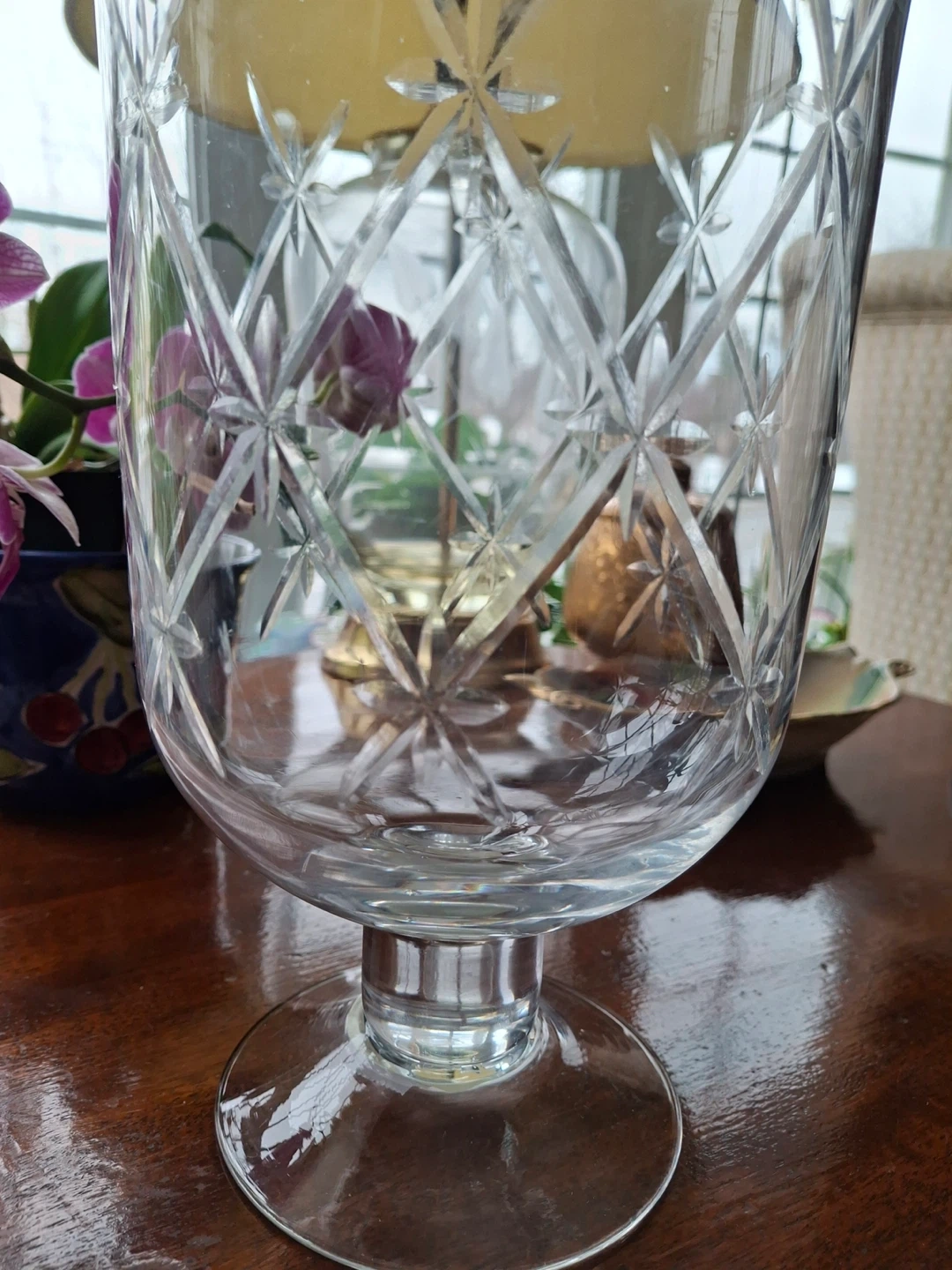 Etched/cut glass candle holder