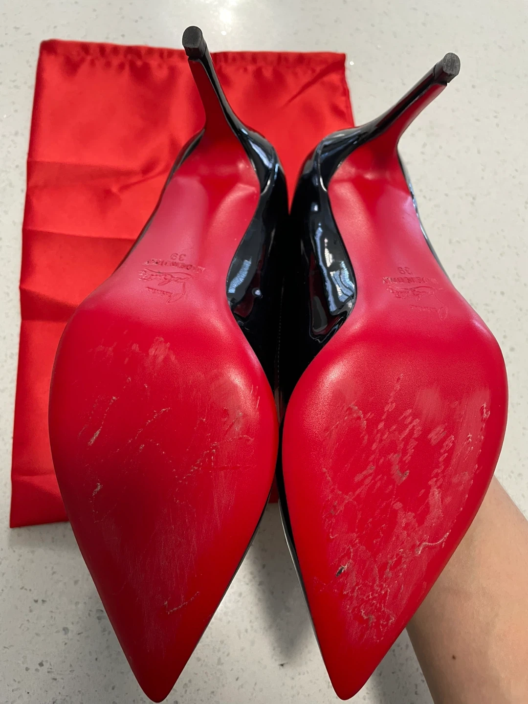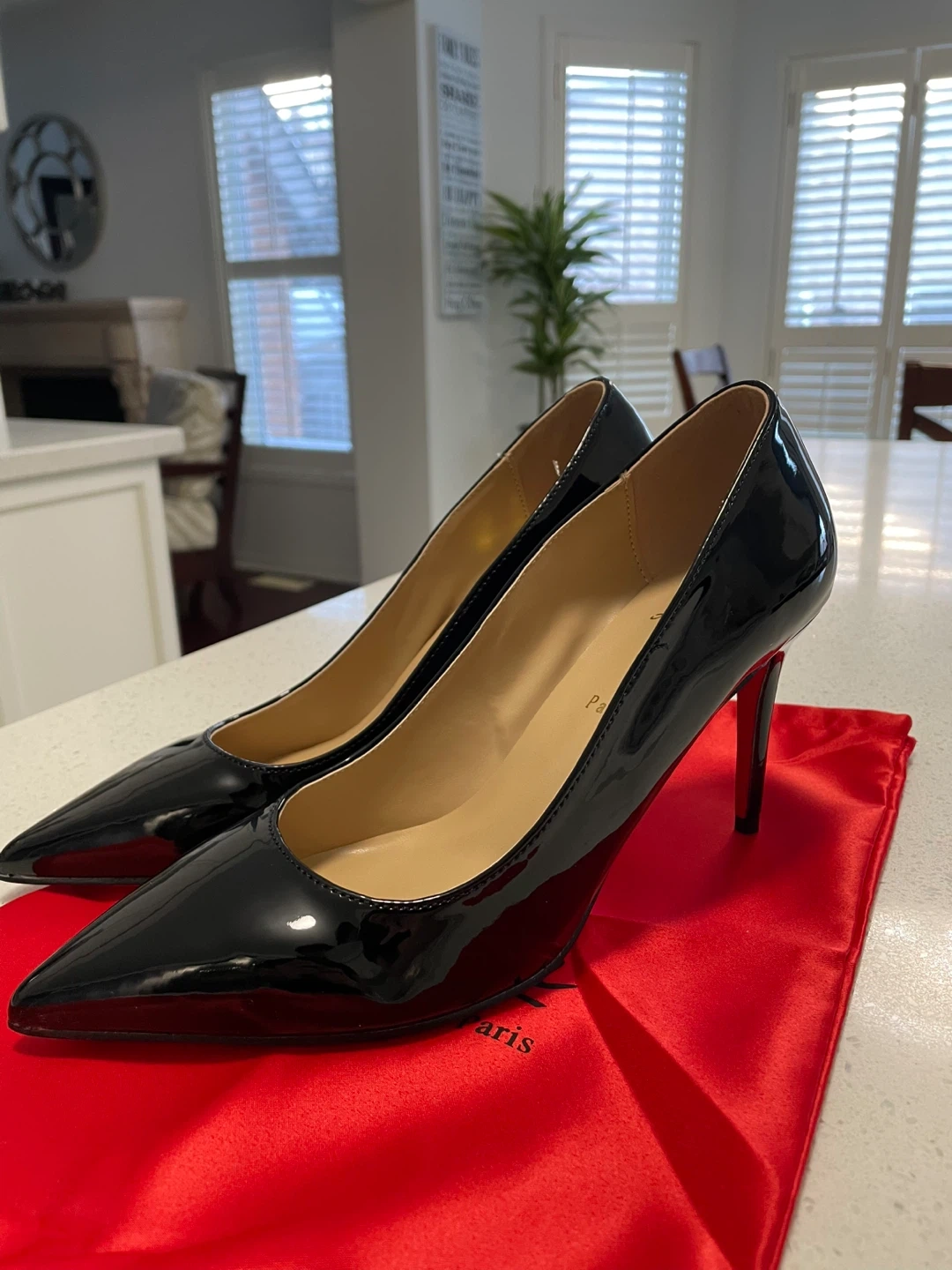 Authentic worn a couple of times Christian Louboutin black patent leather high heels. Featuring the iconic red sole. Comes with a dust bag I couldn’t find the box. Still in great condition. PICKUP BRAMPTON!!