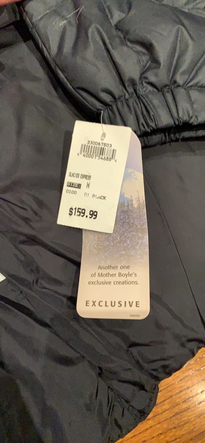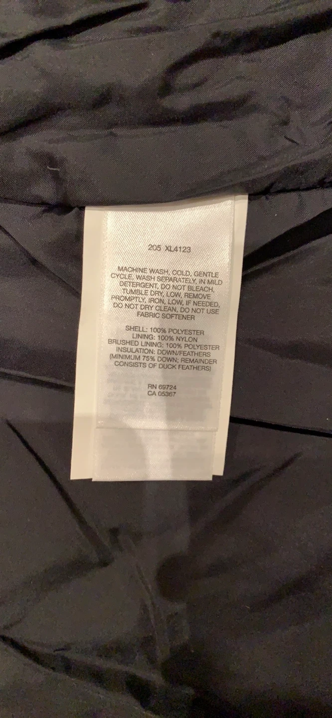 This black Columbia puffer jacket is a size medium. It's made with a 100% polyester shell and lining, and filled with down/feathers. It's great for keeping warm when it's chilly out!